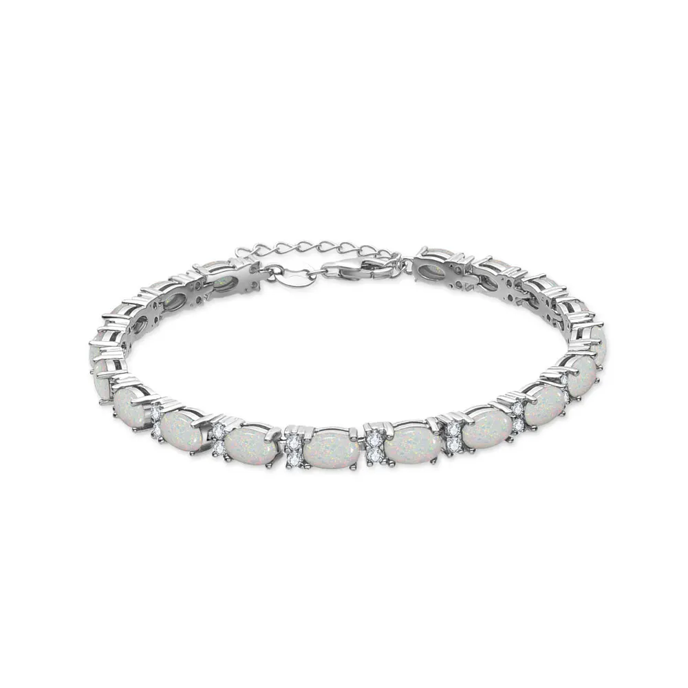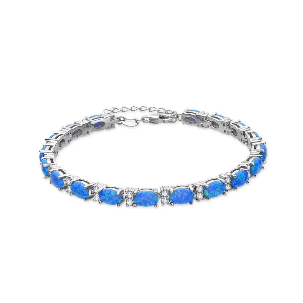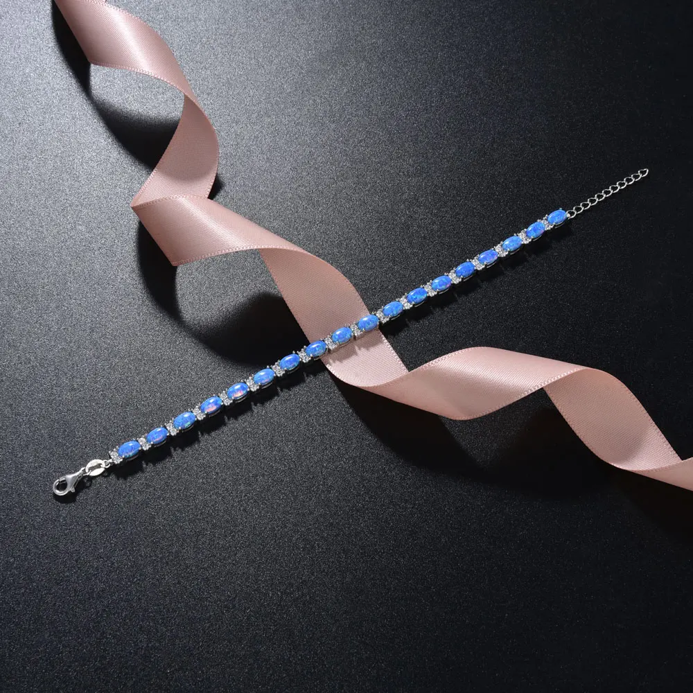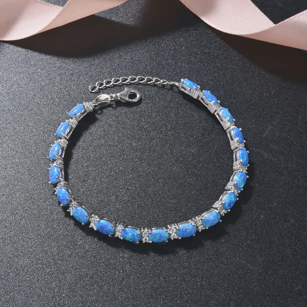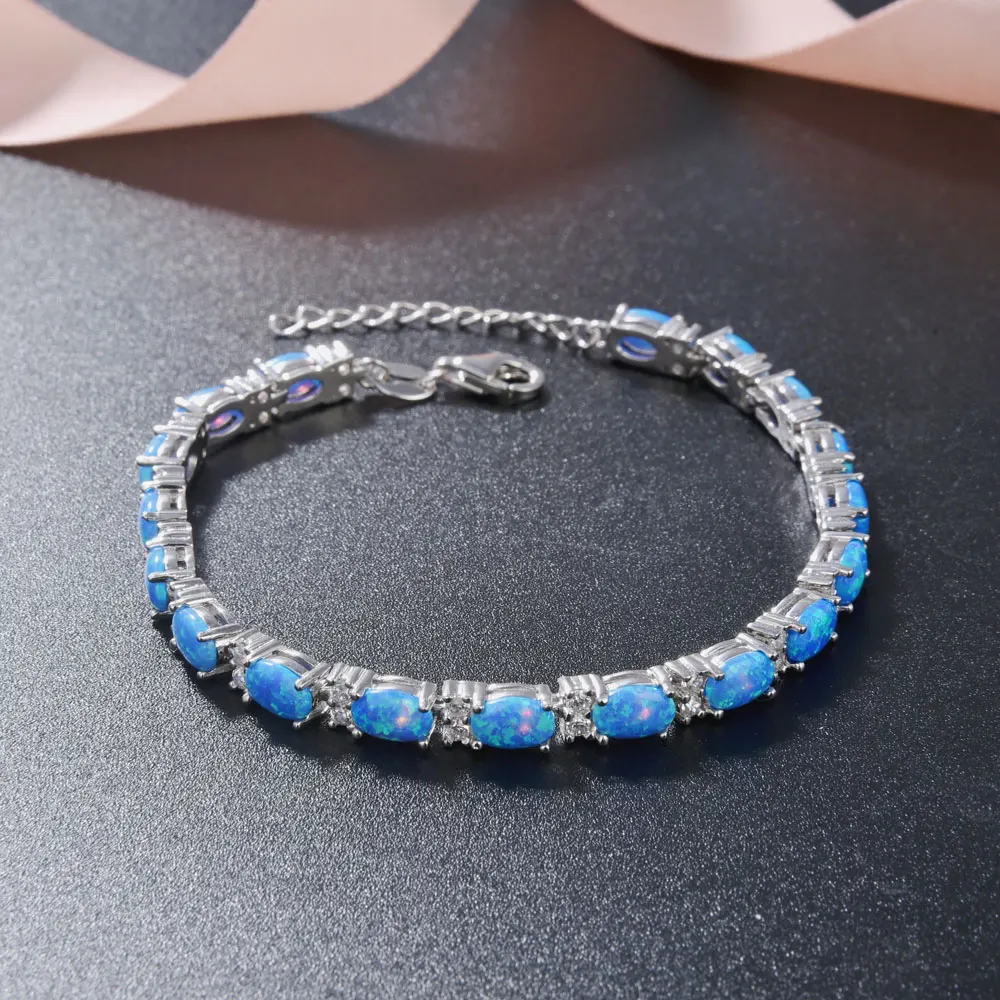Cute S925 Sterling Silver Charm Bracelet for Women Plated with Oval Blue Opal Stone Party Gift Idea Fine Jewelry