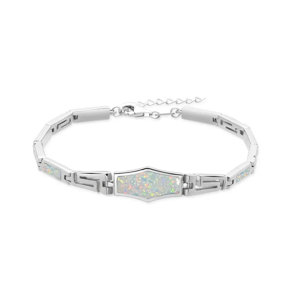 Elegant 925 Sterling Silver Crown Fire Opal Charm Bracelet Rhodium Plated Cute Style for Engagement Party Gift