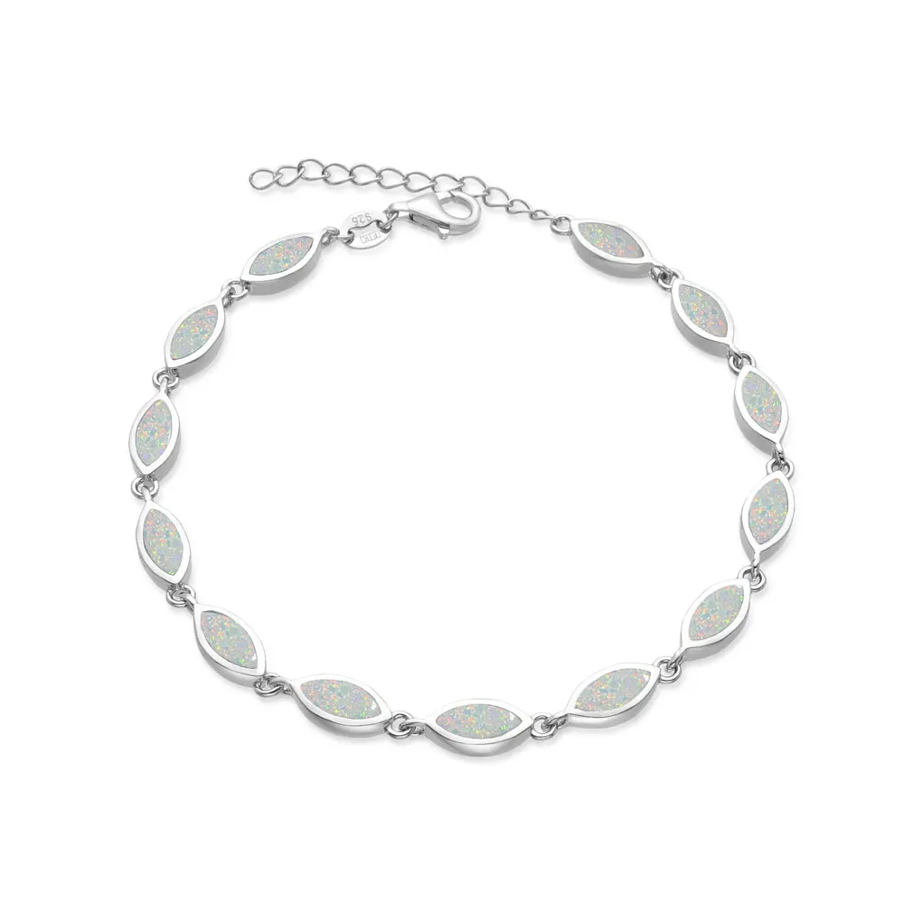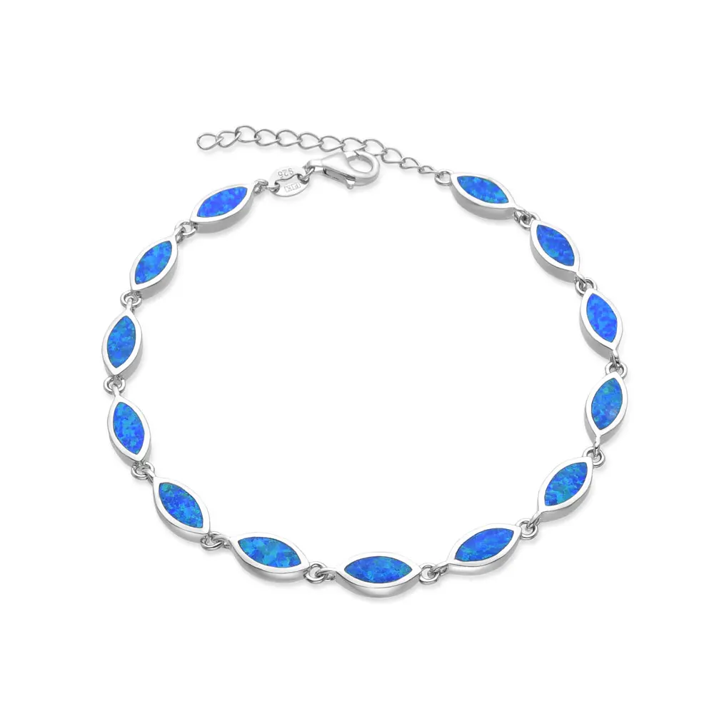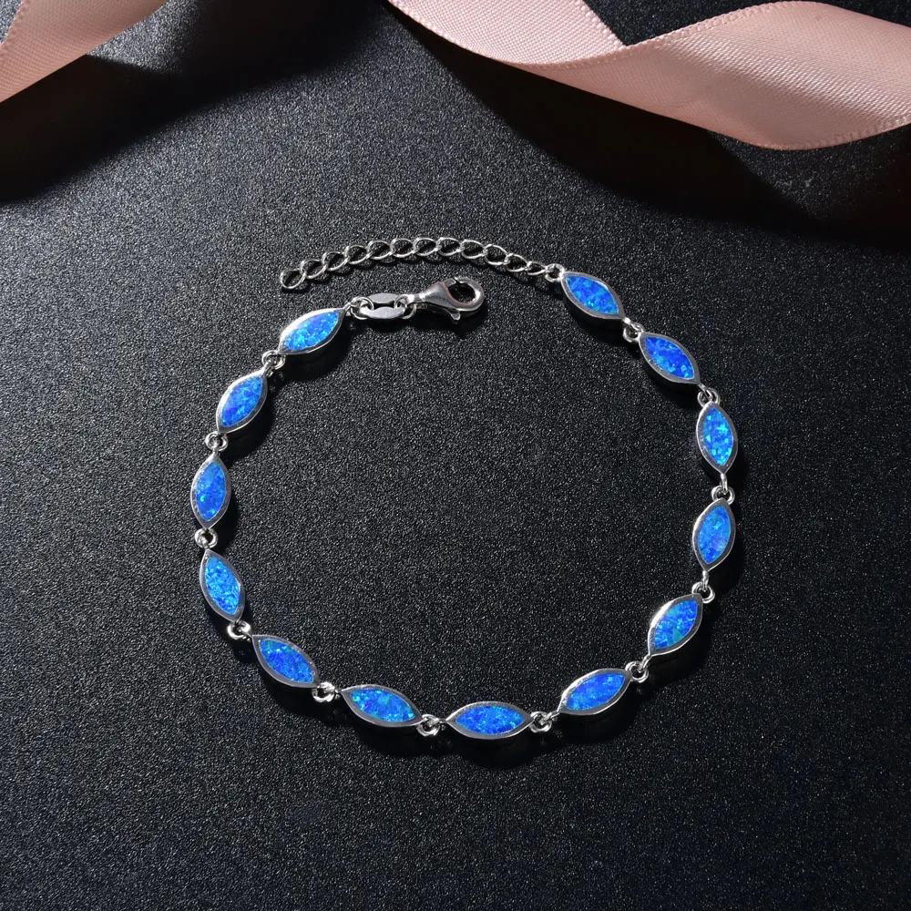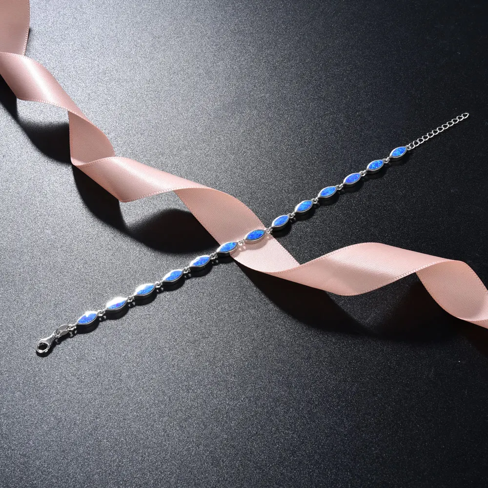 925 Sterling Silver Solid Blue Stone Opal Bracelet for Women Rhodium Plated for Anniversary Fashion Jewelry