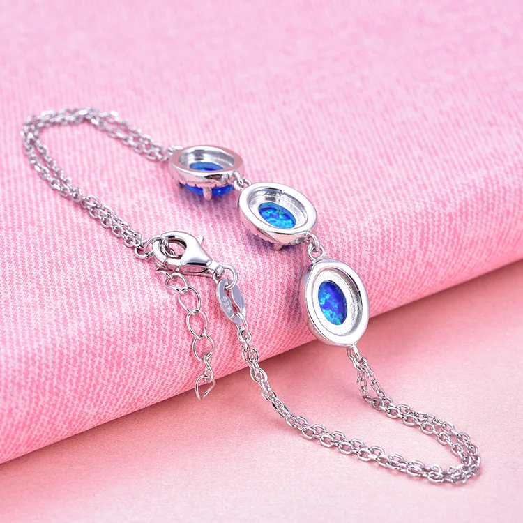 925 Sterling Silver Luxury Bracelet with White Blue Opal Stone Rhodium Gold Plated Vintage Style Charm Bracelets for Party Gift