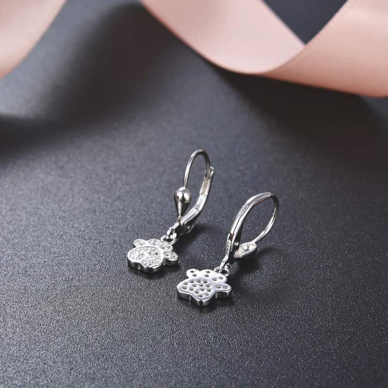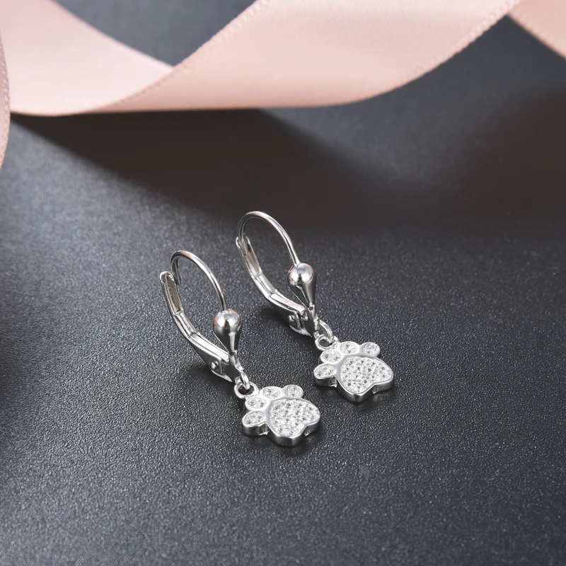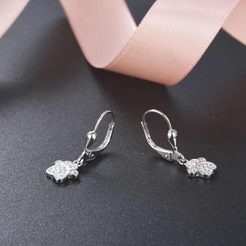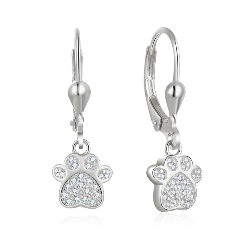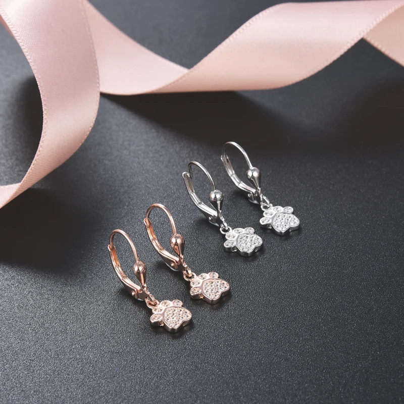 Drop Leverback Earrings Rose Gold Plated Print 925 Sterling Silver Women's POLIVA Zircon R&D Team, 3D Jewelry Printer Dog Paw