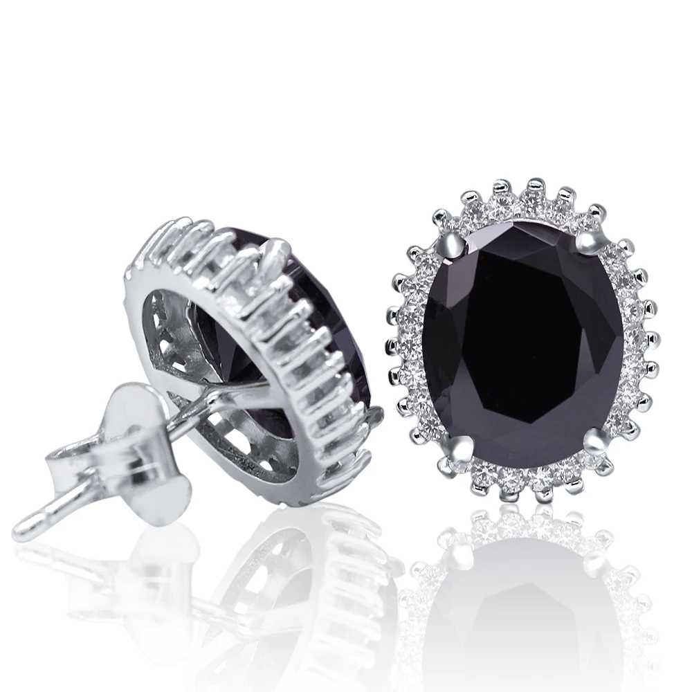 POLIVA Princess Diana William Kate Engagement Oval Created Blue Sapphire White CZ Hola Cluster Silver Earrings 925
