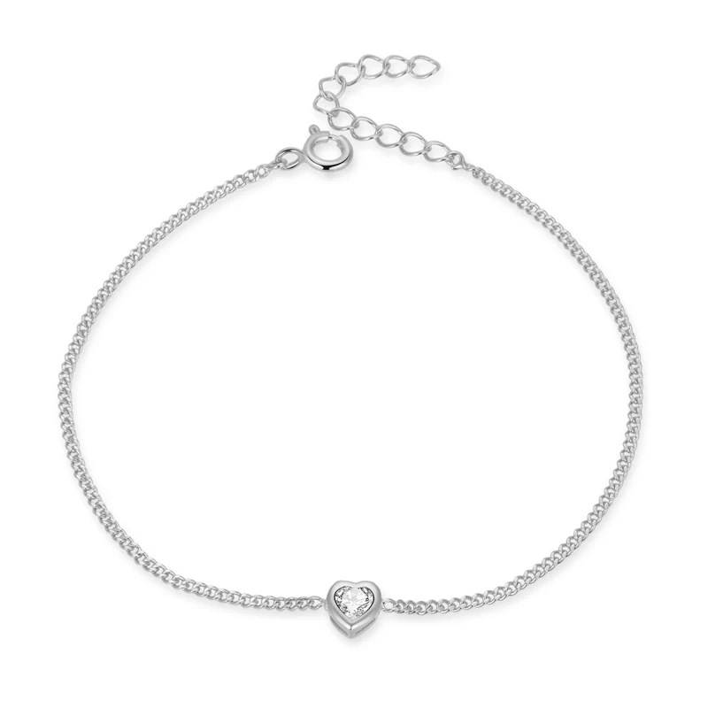 Women's 925 Sterling Silver Adjustable Cuban Chain Bracelet White Gold Heart Diamond Zircon Best Party Gift for Women Girls
