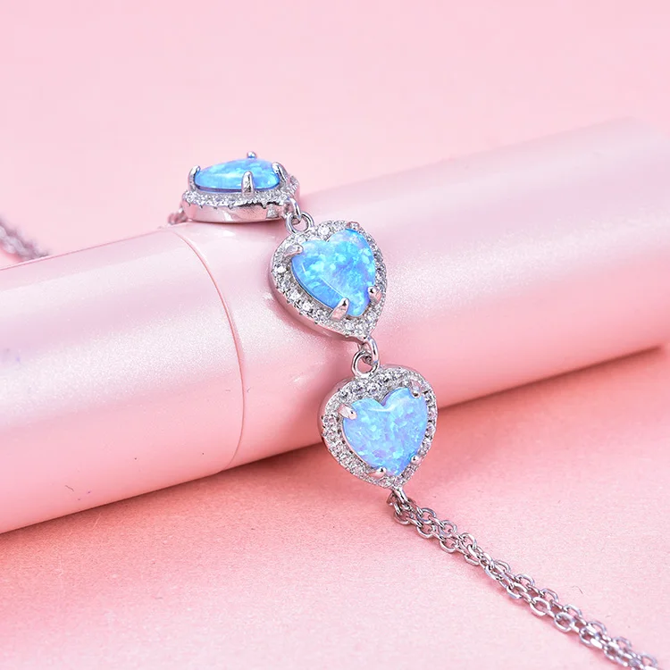 High Quality 925 Sterling Silver Heart Opale Bracelet Adjustable with Gold and Rhodium Plating for Gift or Party