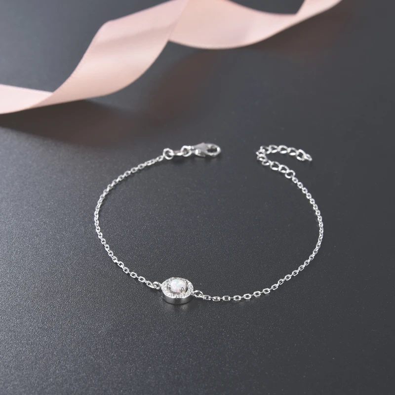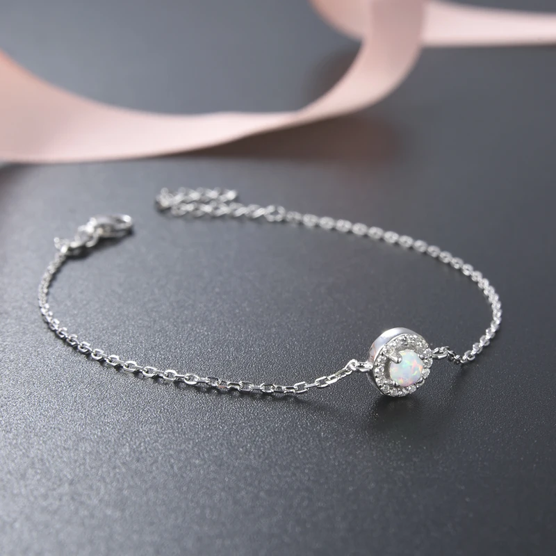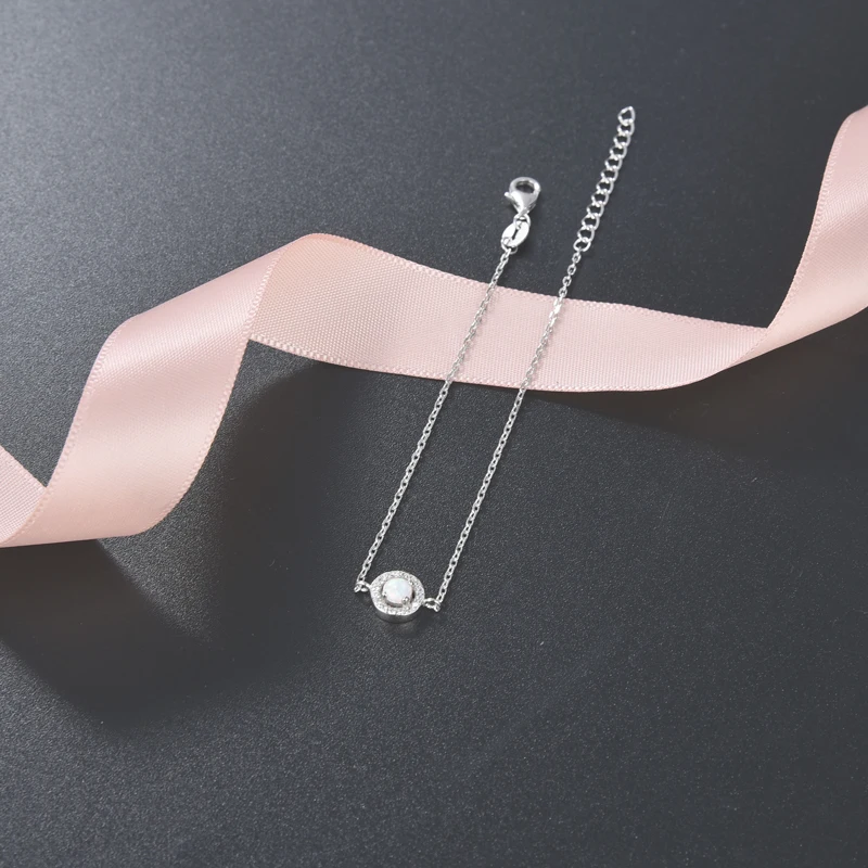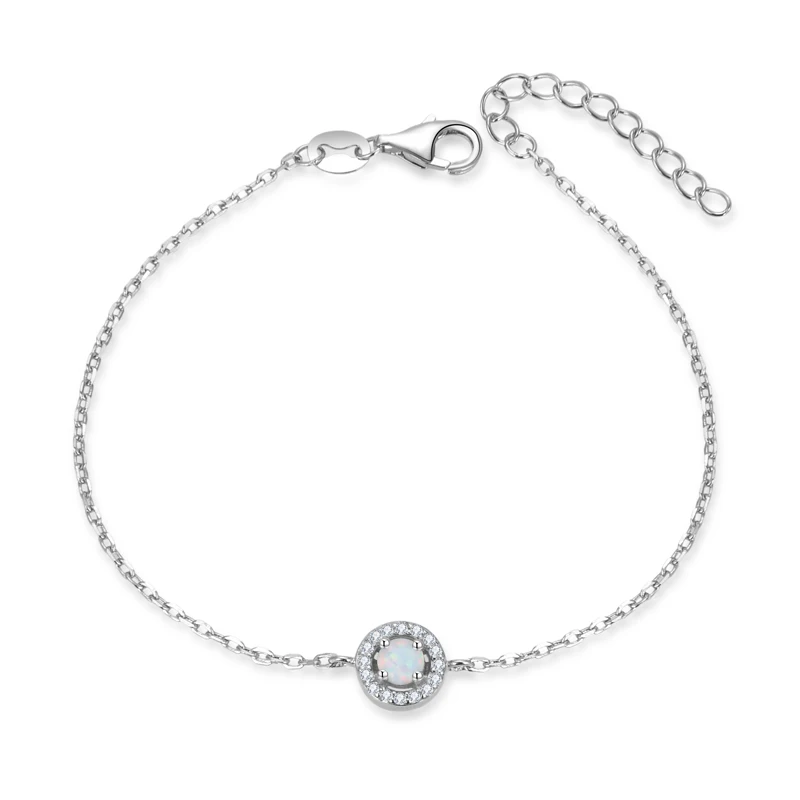 Adjustable 925 Sterling Silver AAA Cubic Zirconia Rhodium Plated Round Shape Opal Bracelets Bangles