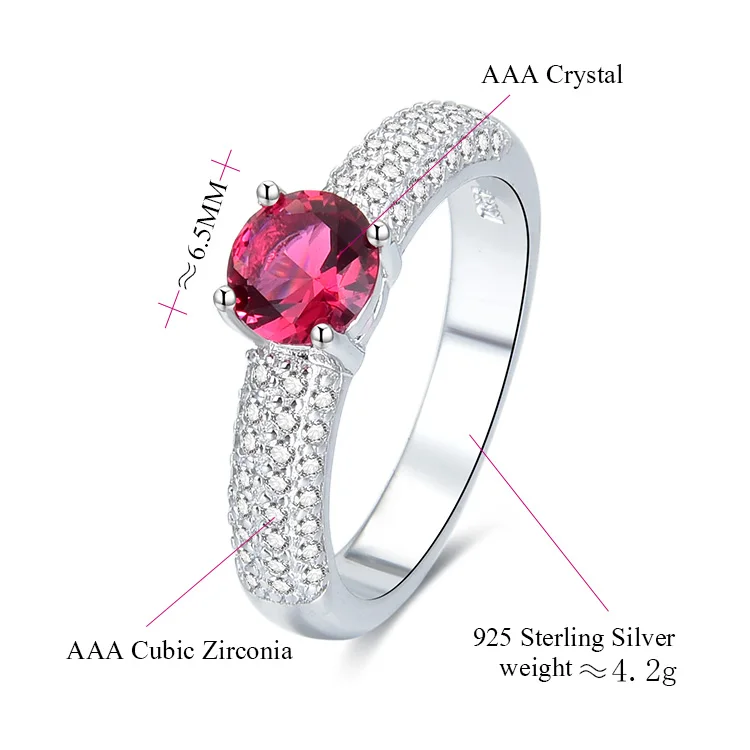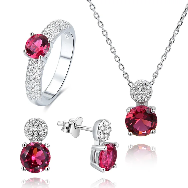 POLIVA Women's Solid 925 Sterling Silver Jewelry Set Red Ruby Zircon Earring Necklace Ring for Wedding Wholesale Import GDTC