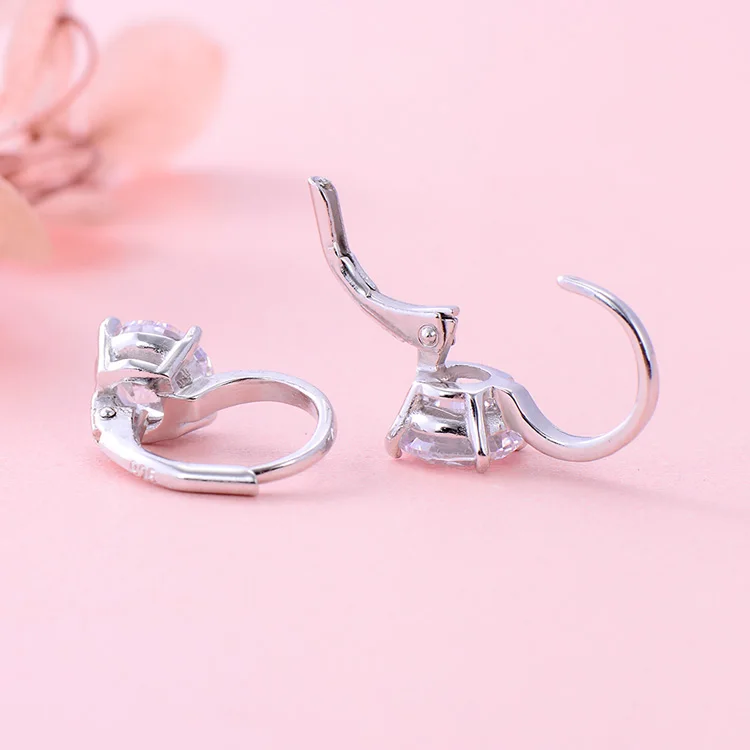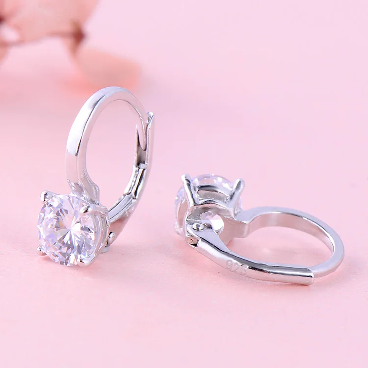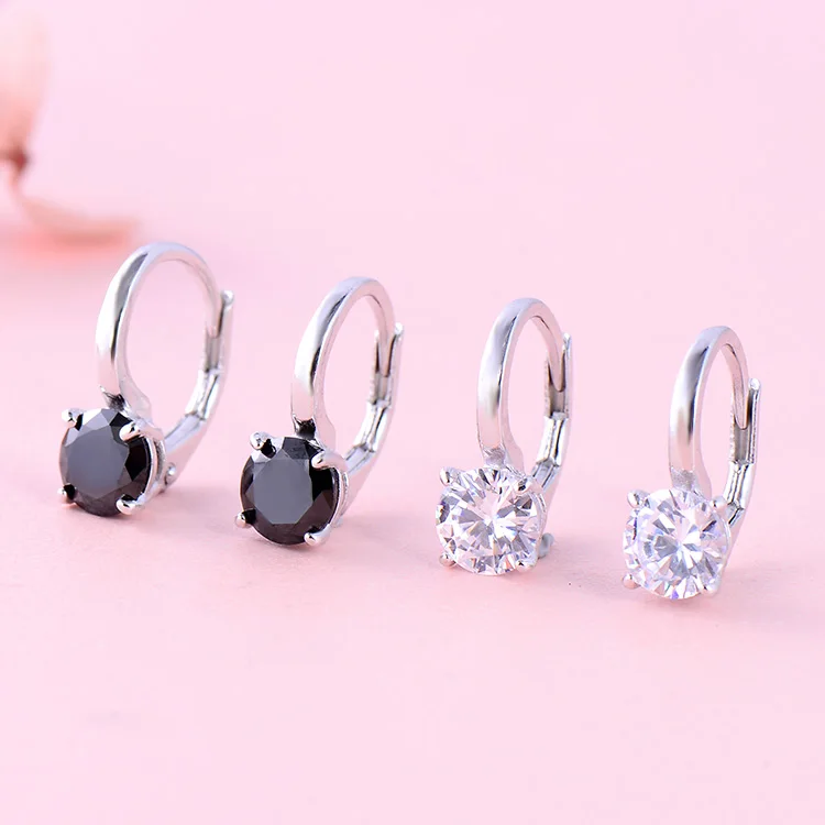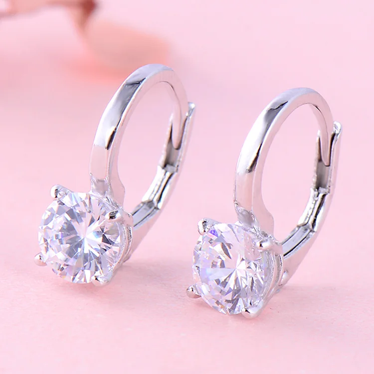POLIVA Solitaire Huggie Leverback Earrings Cubic Zirconia Earing 925 Sterling Silver Creative Japan and South Korea Simple Round