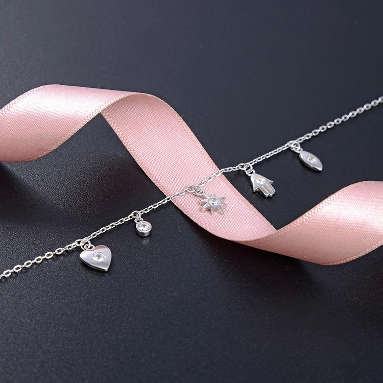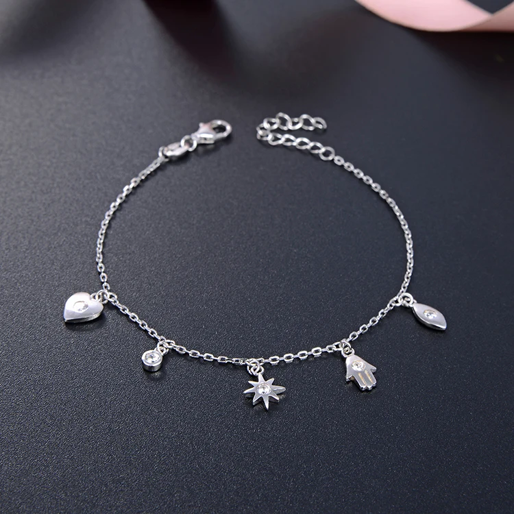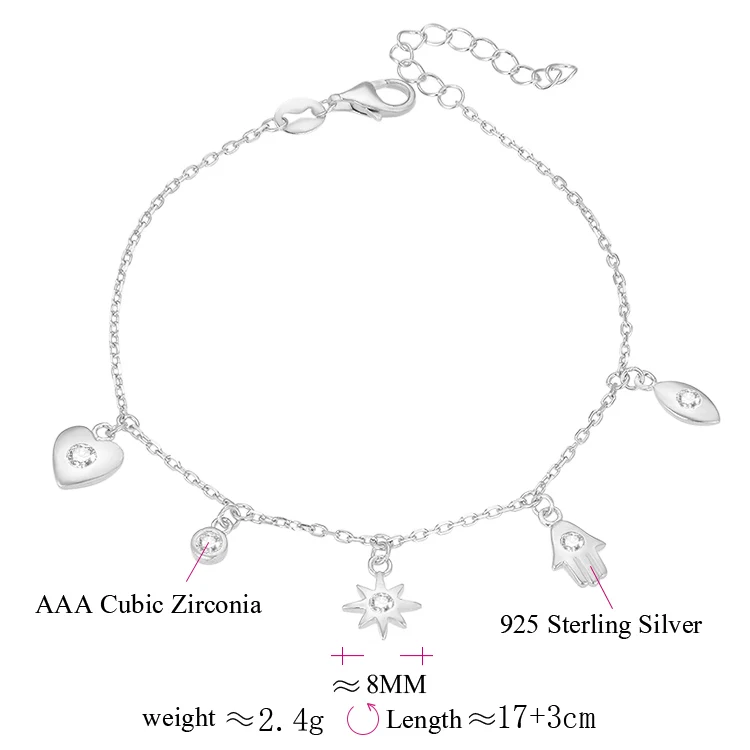 POLIVA 925 Sterling Silver Bracelet with Rhodium and Gold Plating Classic Style Number Shape/Pattern Small Pendants Chains