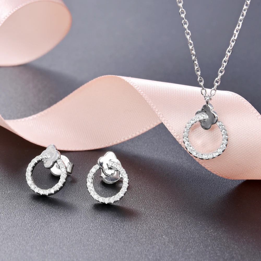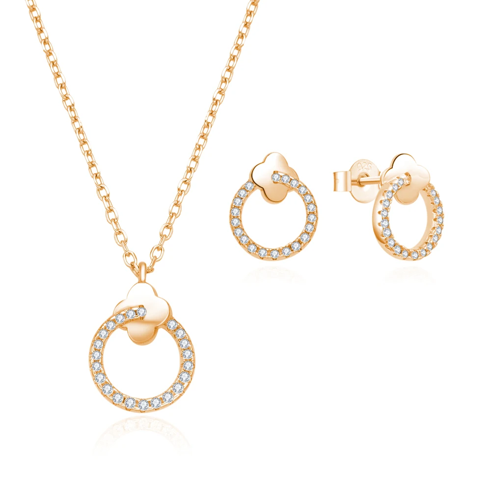 Poliva 925 Sterling Silver Micron Setting Zircon Round Shape Necklace Earring Set