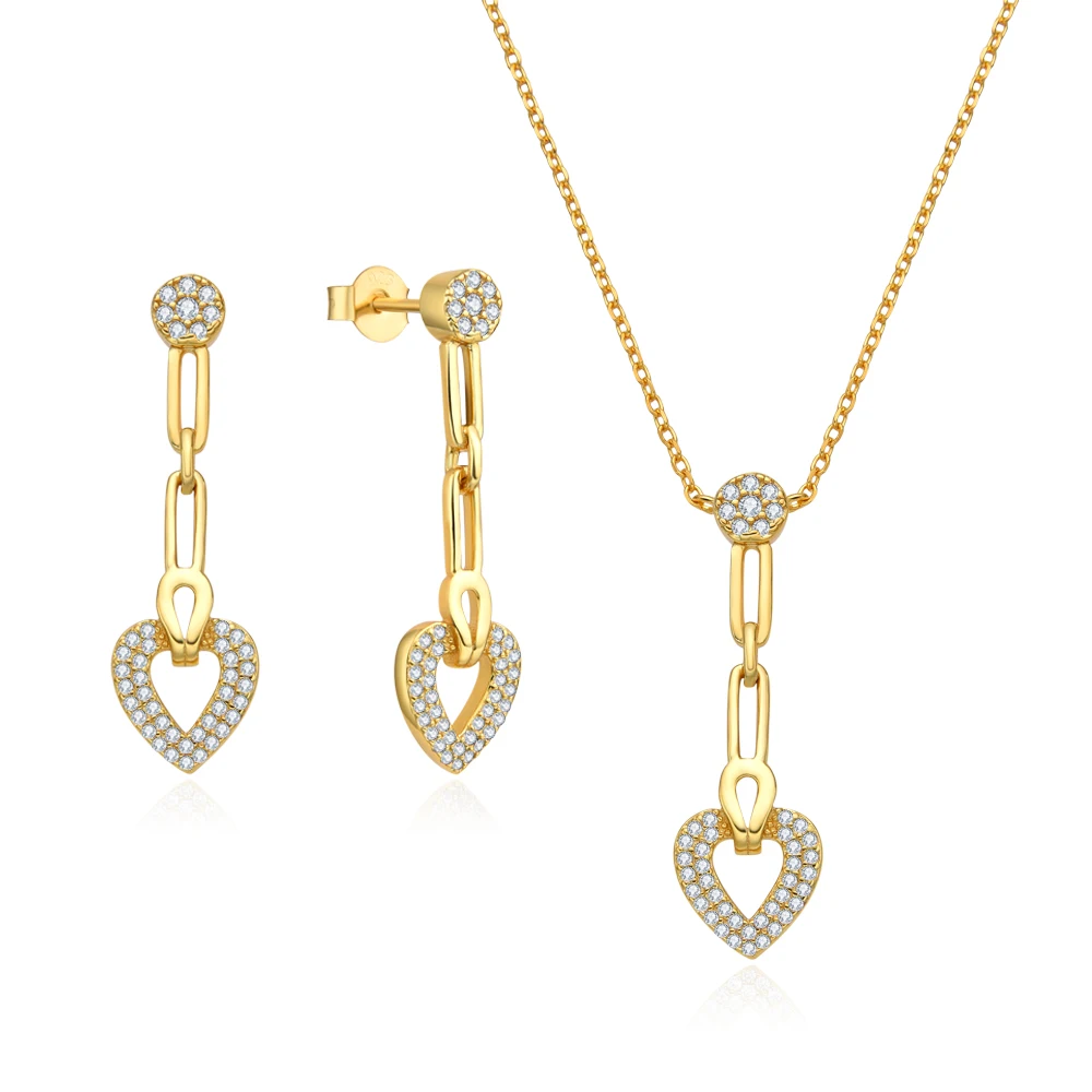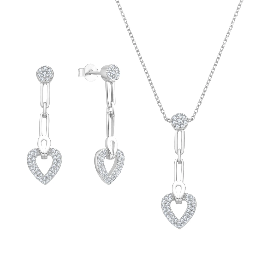 925 Sterling Silver Cubic Zirconia Love Heart Bridal Pendant Necklace Drop Earrings Set for Women Wedding Valentine's Day