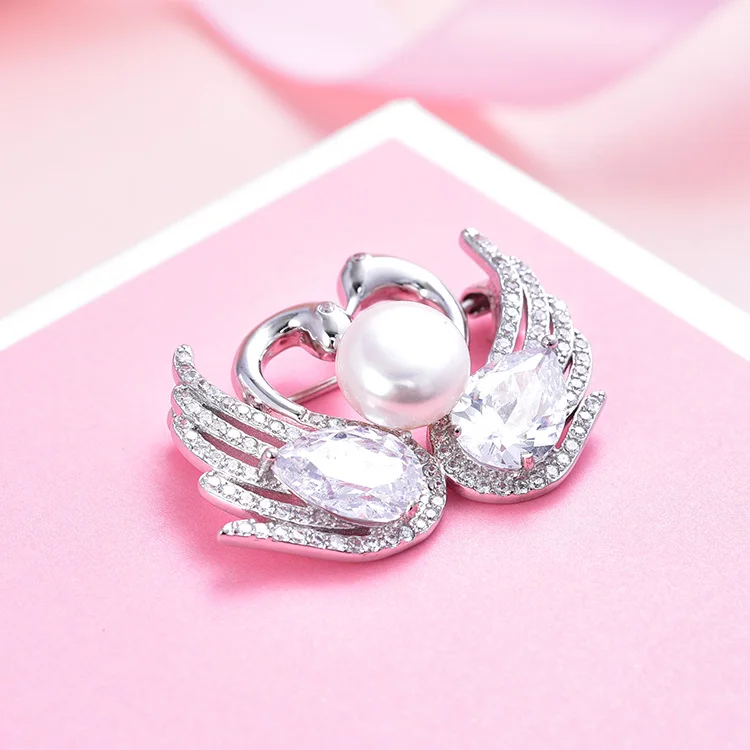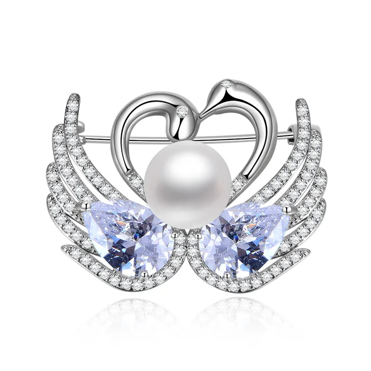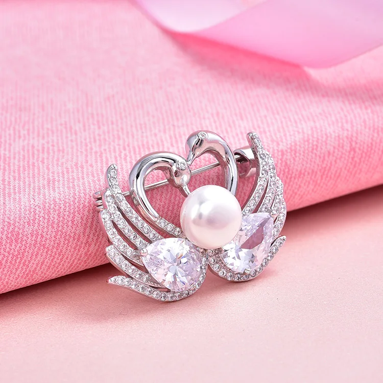 925 Sterling Silver Brooch Luxury Jewelry Woman Heart Swan Pearl Brooches