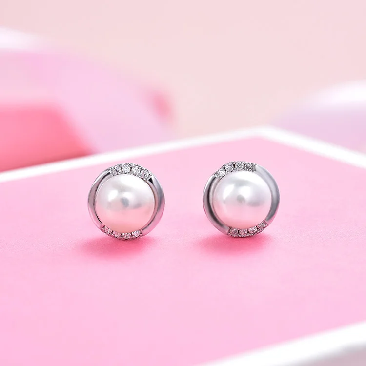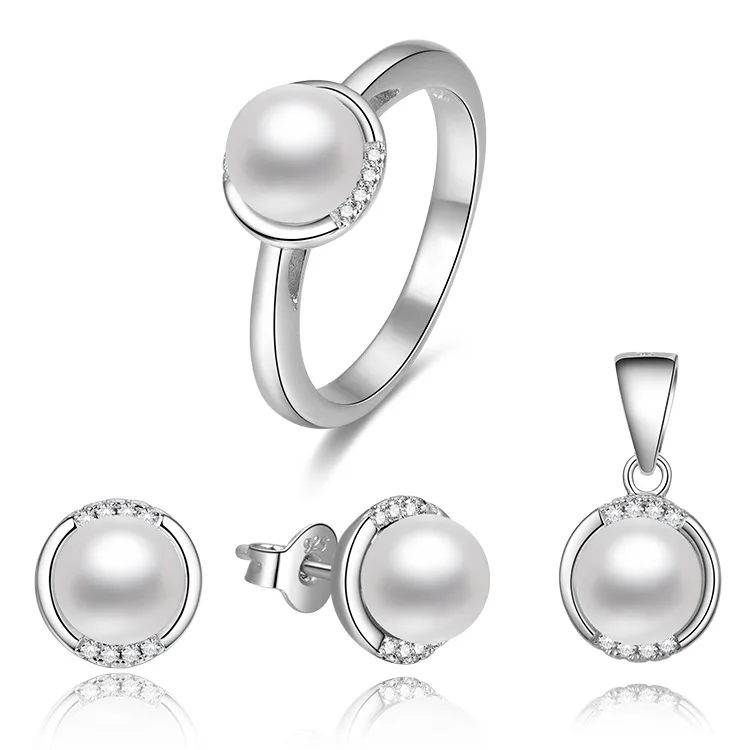 Handmade Simple Style 925 Sterling Silver Jewelry Sets Aaa Cubic Zirconia Rhodium Plated Freshwater Pearl Jewelry Set