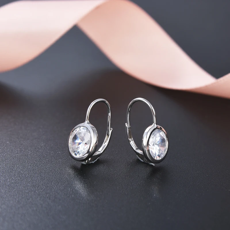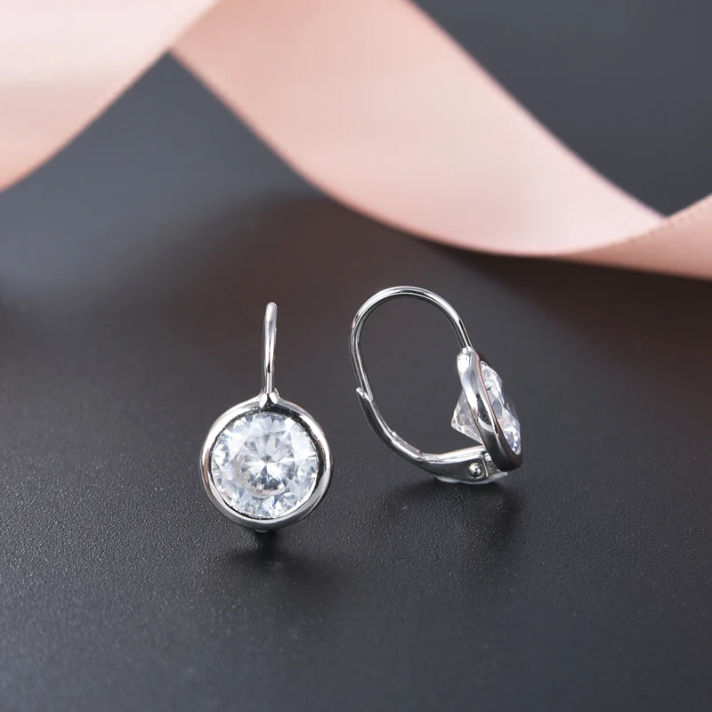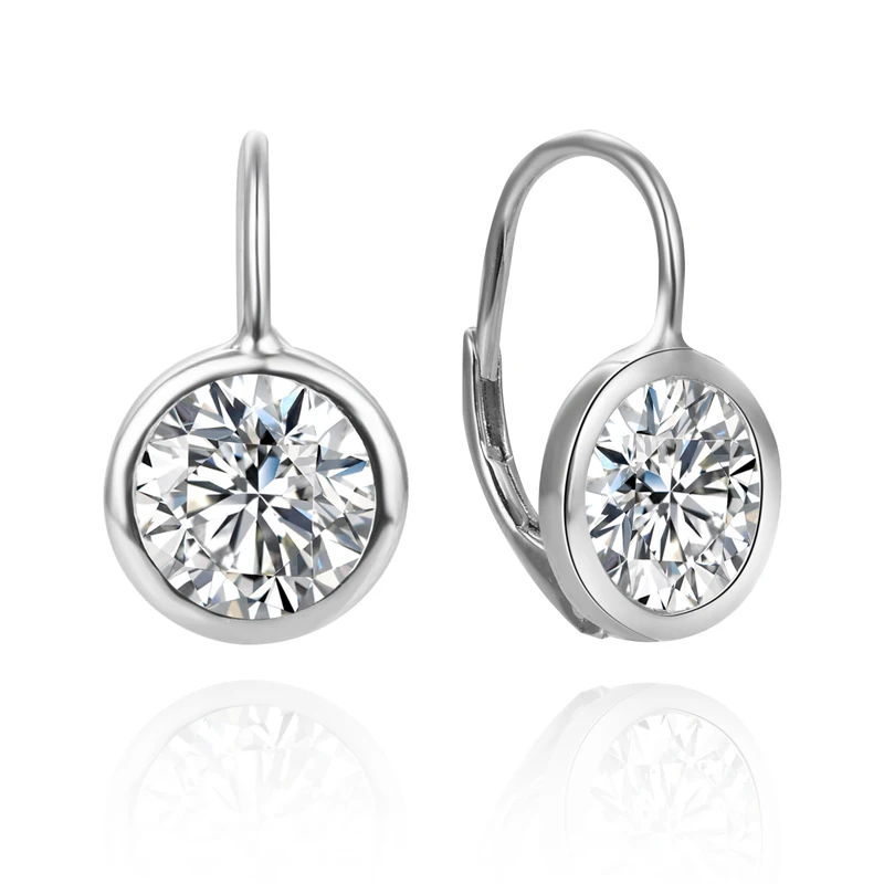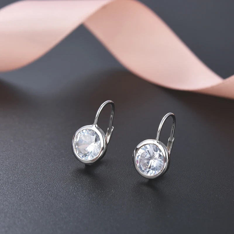 Daily Wear Gift-Worthy 925 Sterling Silver Leverback Drop Pierced Earrings with Round Crystals Embellished Design for Women