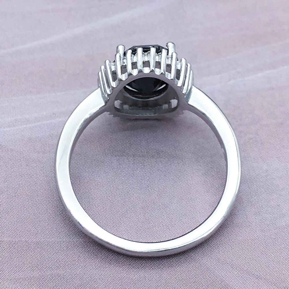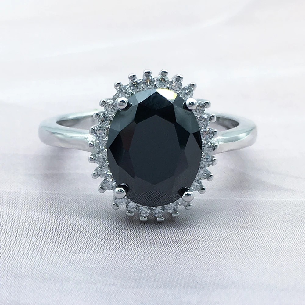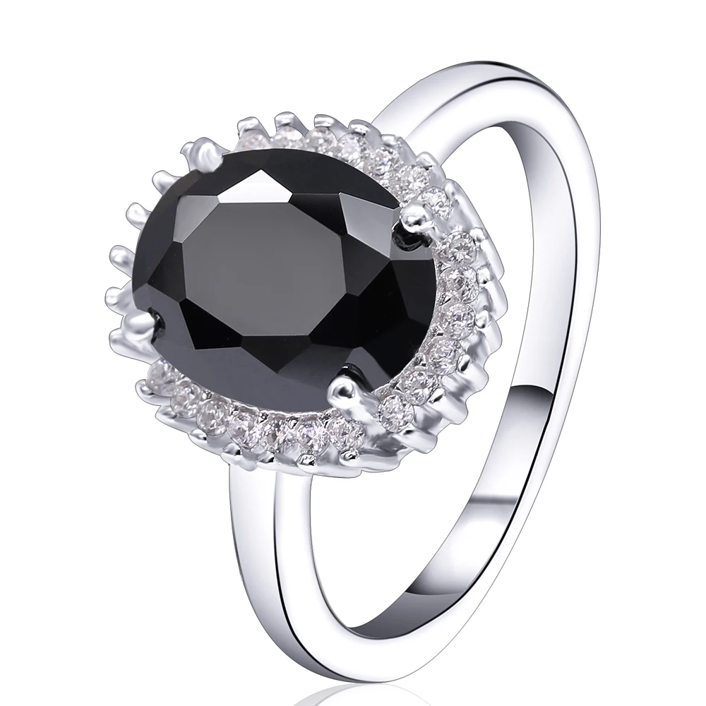 POLIVA 925 Sterling Siver Ring, Ladies Black Gemstone Crystal CZ Eternity Bridal Band Rings