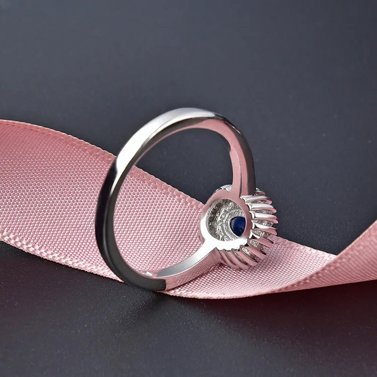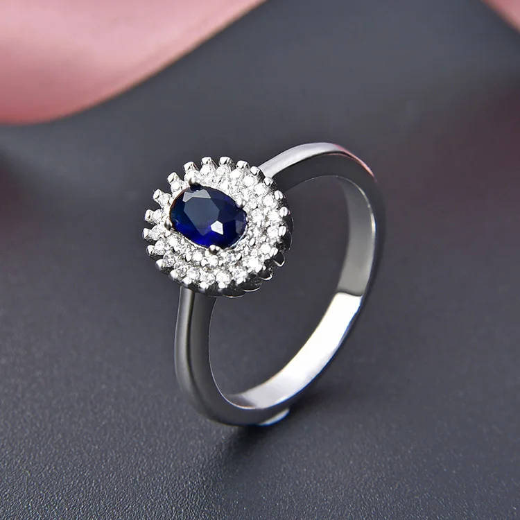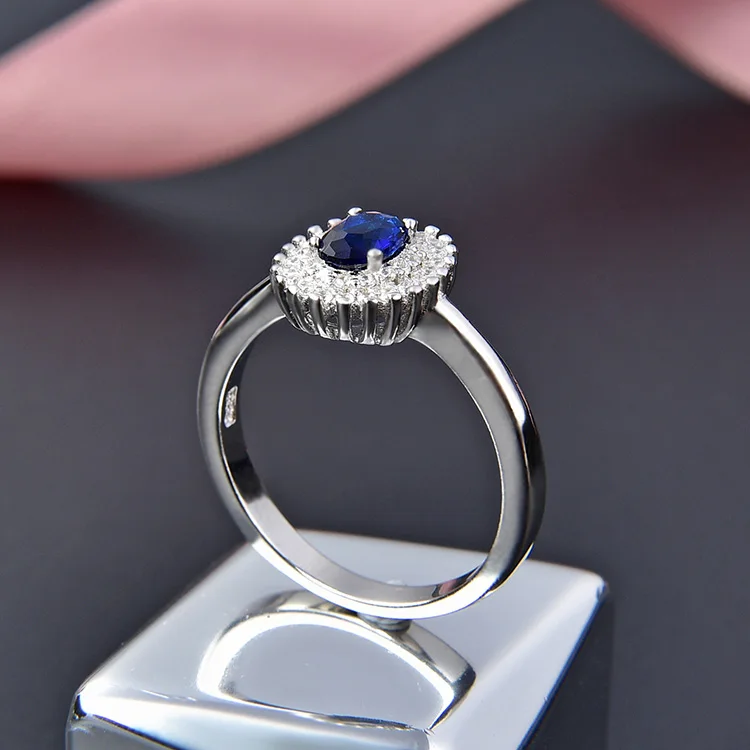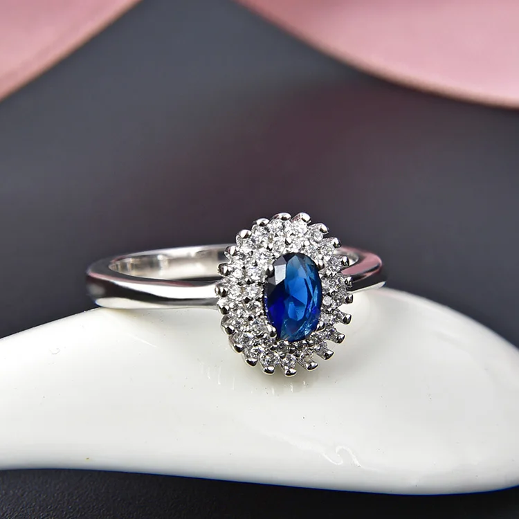 POLIVA Sterling Silver Blue Crystal Ring Oval Zirconia Gemstone Rings for Women