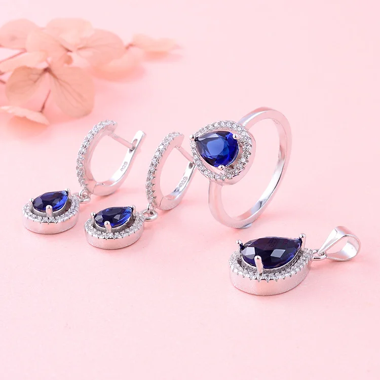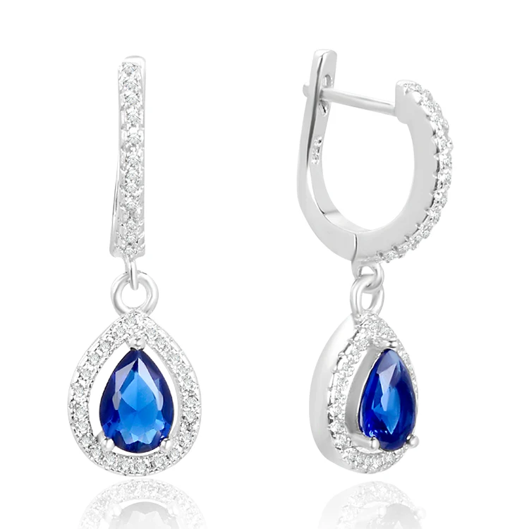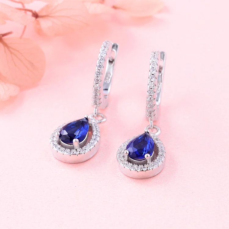 Jewellery Aaa Crystal English Lock Sapphire Teardrop Rainbow Stone 925 Sterling Earring Silver