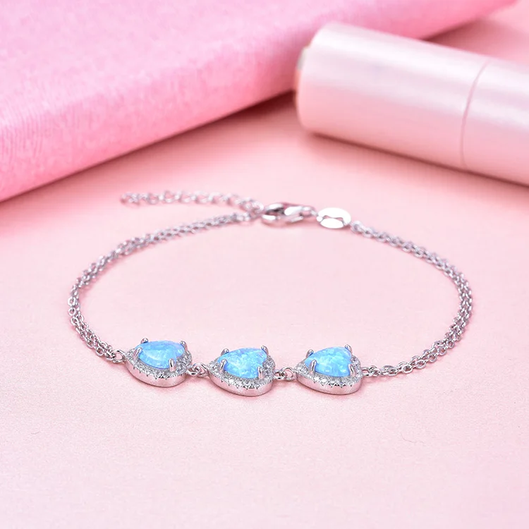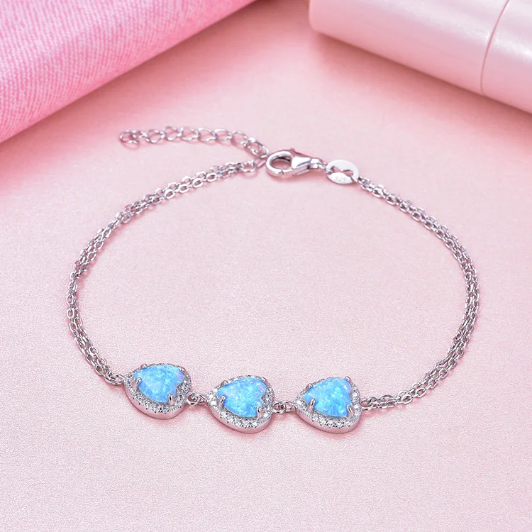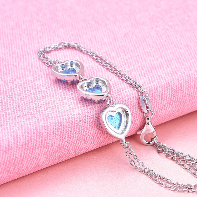 Fine Jewelry Bracelet with Three Heart-Shaped Light Blue Fire Opals Crafted From 925 Sterling Silver