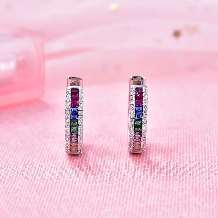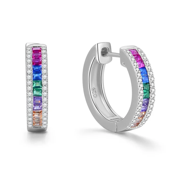 New Style 925 Sterling Silver Aaa Cubic Zirconia Rainbow Stone Colorful Zircon Earring