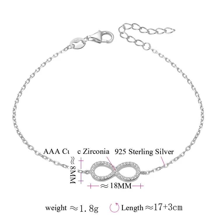 POLIVA Rhodium Plated Women Friendship Bracelets 925 Accessories Bracelet Bracelets, Bangles Charm Silver White Zircon Infinity