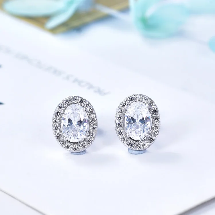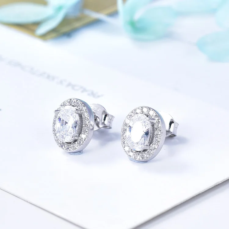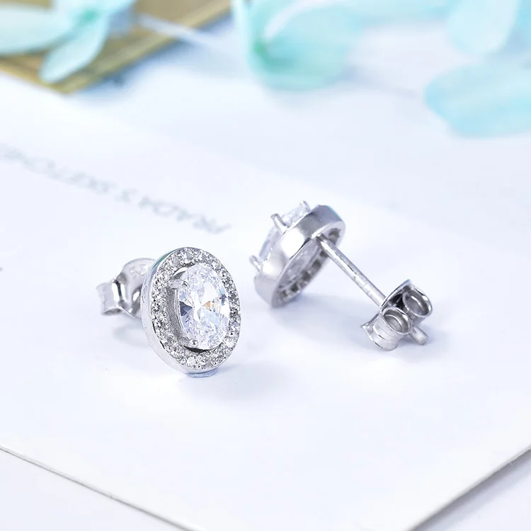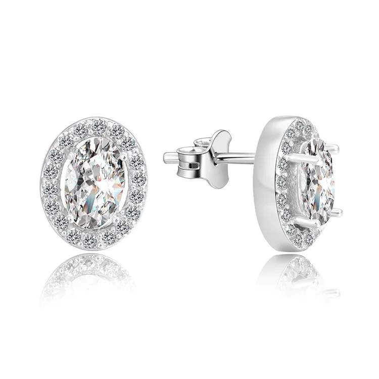 Classic Moissanite Custom Earrings Jewelry 925 Sterling Silver Rhodium Plated Oval Shape Earrings