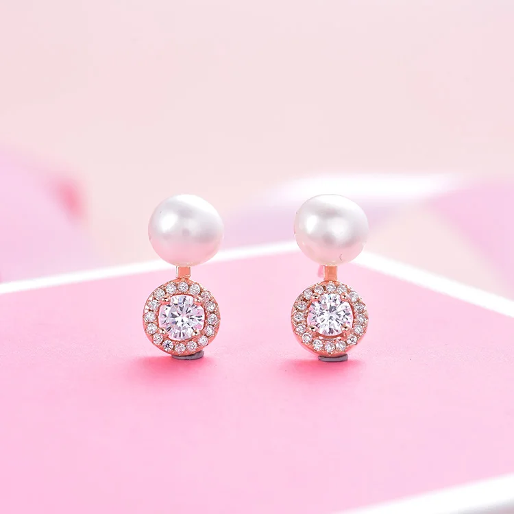 Beautiful Aaa Cubic Zirconia Rose Gold Plating Jewelry Set Freshwater Pearl Wedding 925 Sterling Silver Jewelry Sets