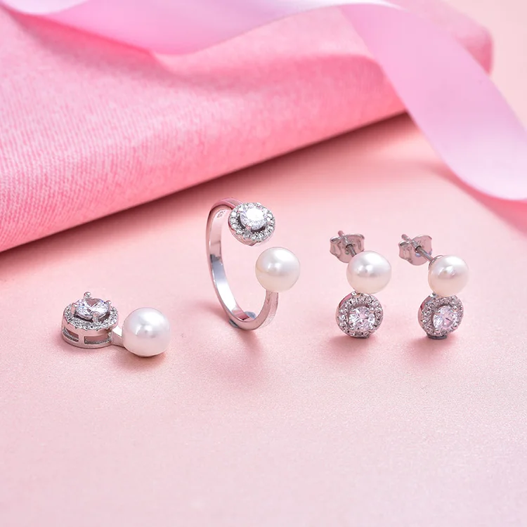 925 Sterling Silver Pearl Jewelry Set Aaa Cubic Zirconia Freshwater Pearl White Gold Jewelry Sets Women
