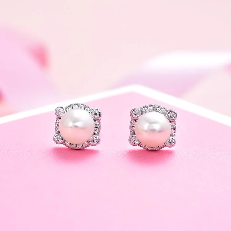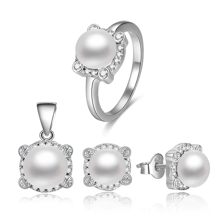 Engagement 925 Sterling Silver Jewelry Sets Aaa Cubic Zirconia Rhodium Plated Freshwater Pearl Luxury Jewelry Set