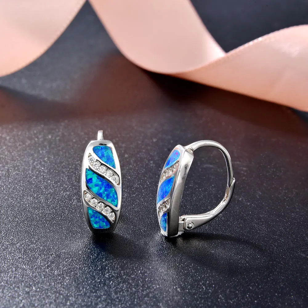 Elegant Women Opal Earrings Weeding Engagement Bridal 18K Real Gold Plated 925 Silver Opal Leverback Earrings