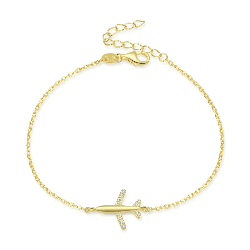 Trendy Rose Gold Plated Airplane Bracelet with Diamond Main Stone Adjustable Link Pattern 925 Sterling Silver Fashionable Style