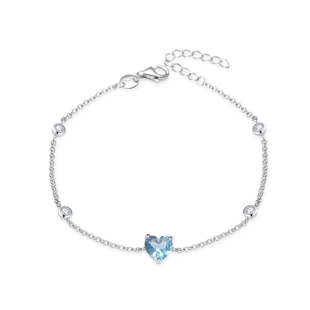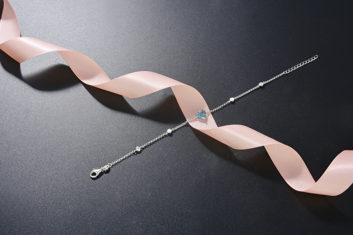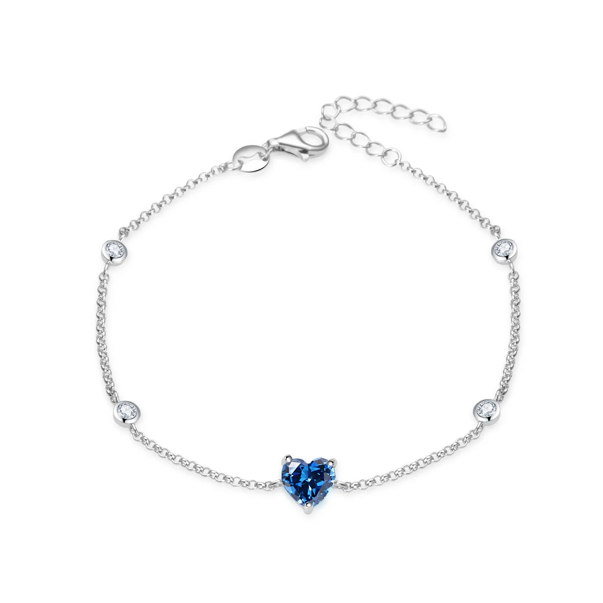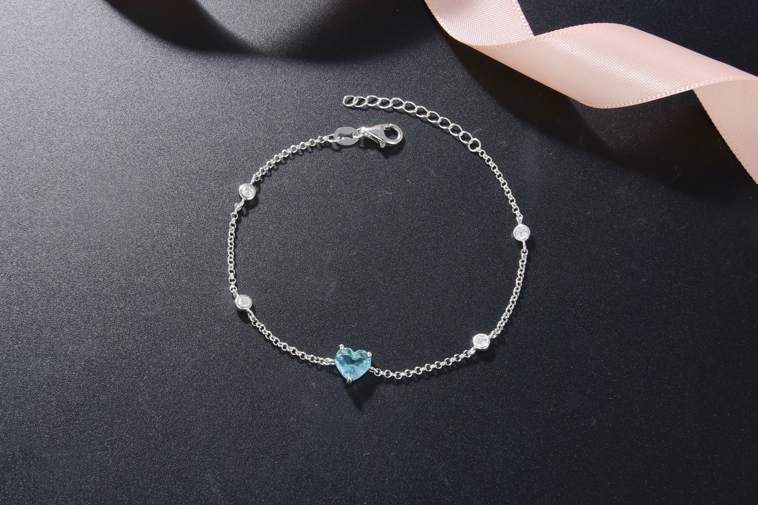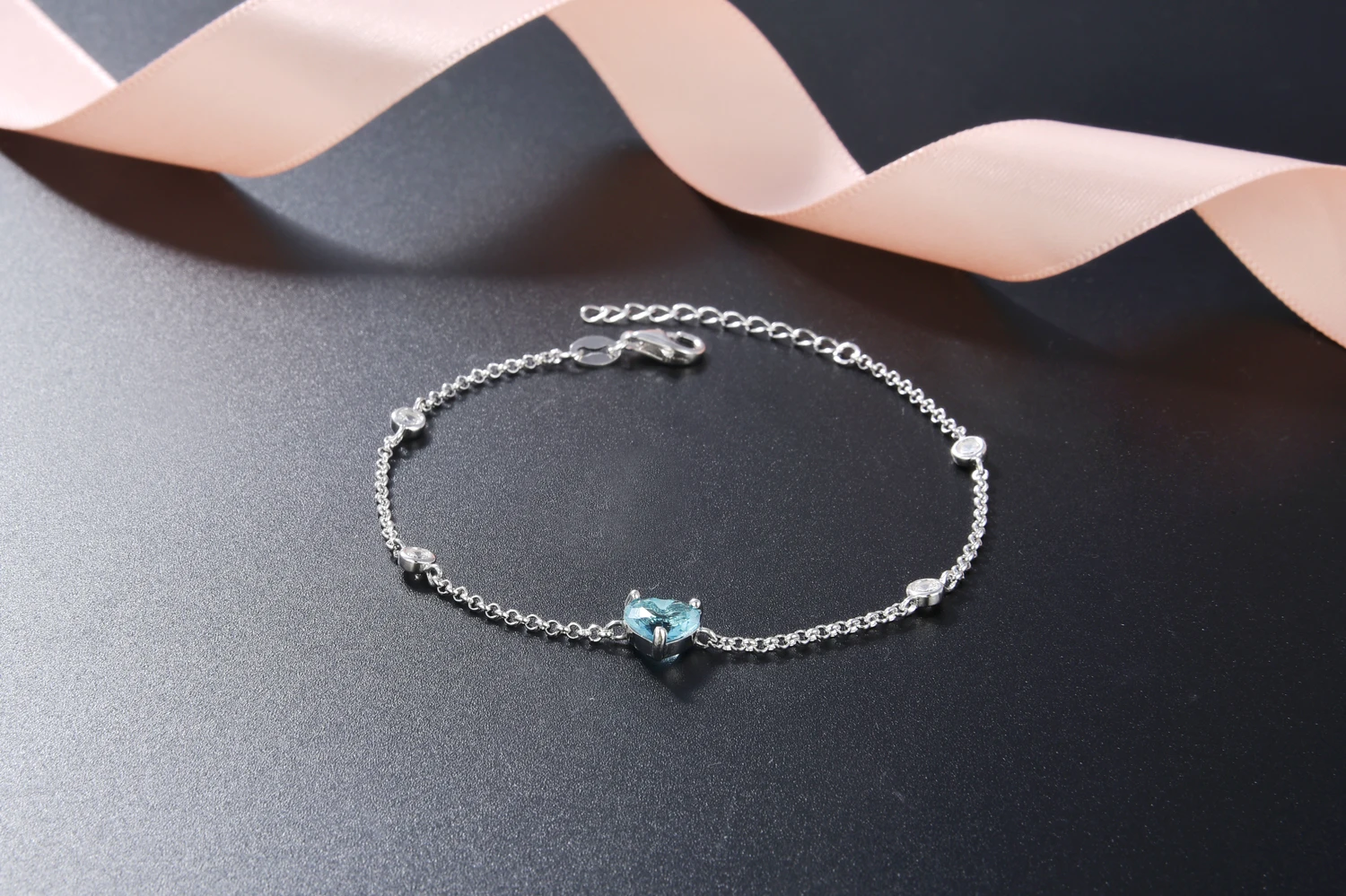 Bling Gem Bracelet 925 Sterling Silver Blue Gemstone Pink Zircon Heart Charm Bracelet Wedding Jewelry Gifts