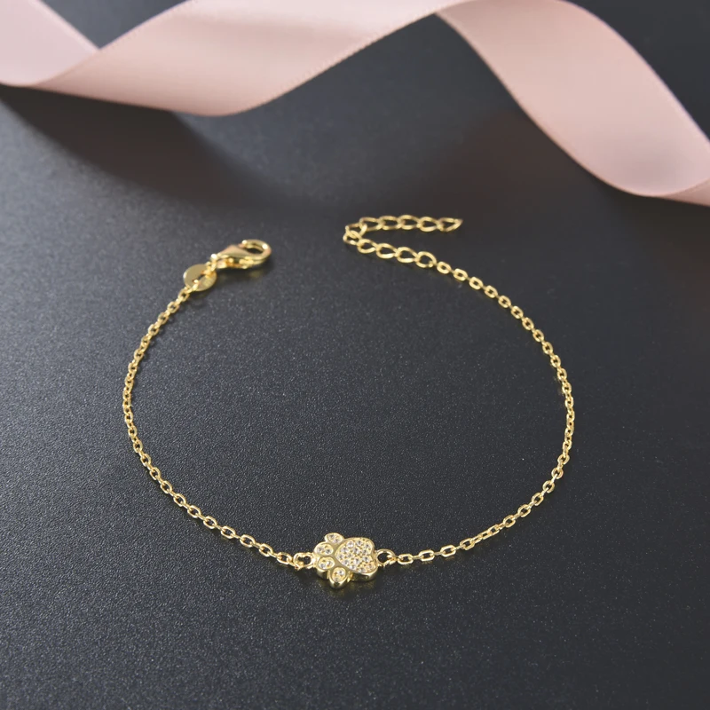 POLIVA Cute Dog Paw Slap Bracelets Gold Chain 925 Sterling Silver Bracelet