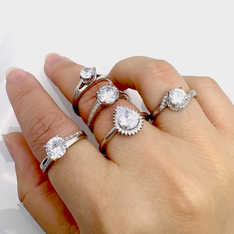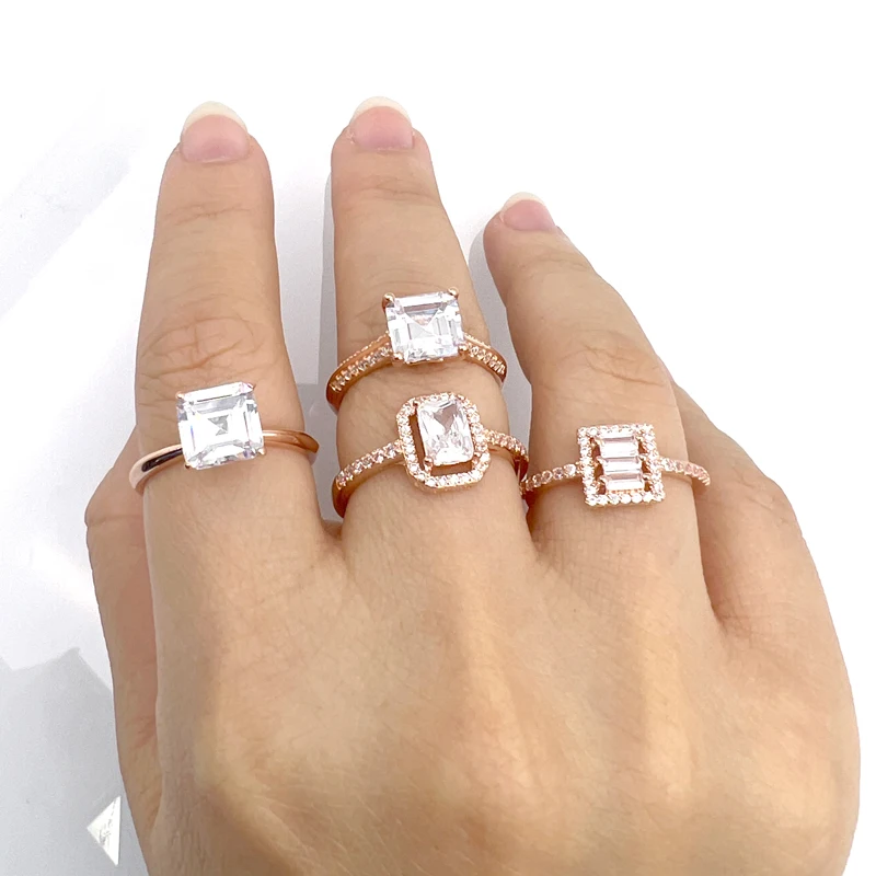Engagement Promise Rings Gold Plated Cubic Zirconia Single Diamond Sterling Silver for Women 18K Silver Jewelry Silver 925 Za