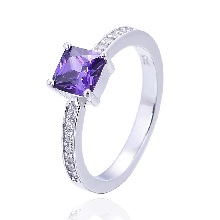 Elegant Design 925 Sterling Silver Jewellery Sets Crystal Square Amethyst White Italian Gold Jewellery Set Women