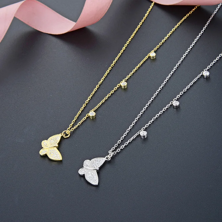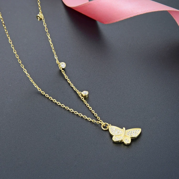 POLIVA Wholesale Kolye Chain Filled Jewelry Plated 18K Collar De Plata Pendant 925 Butterfly Necklace Gold Sterling Silver 30pcs