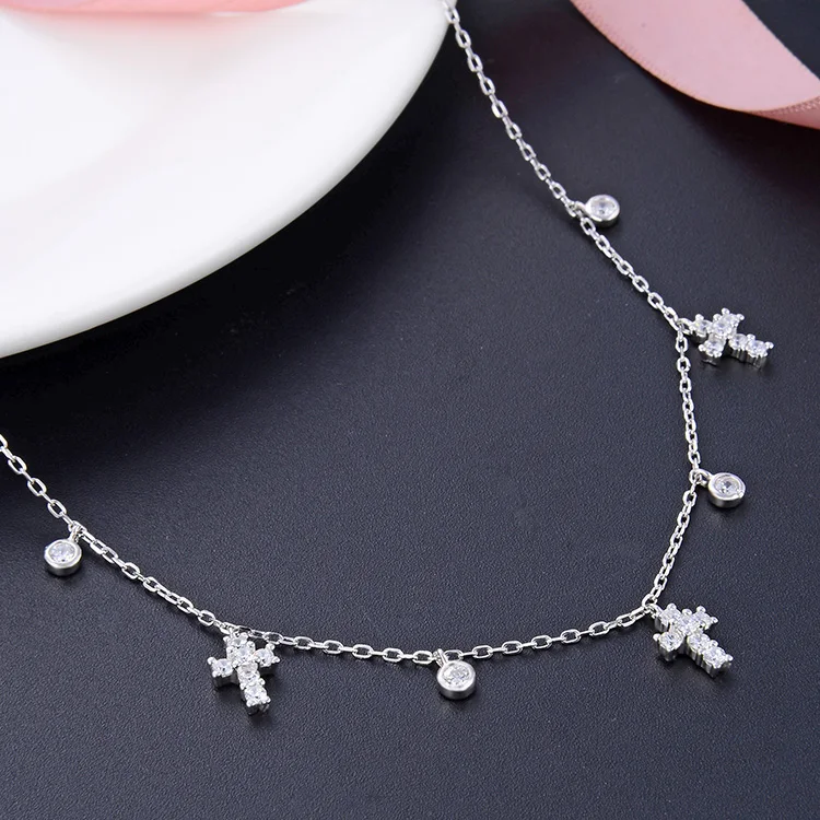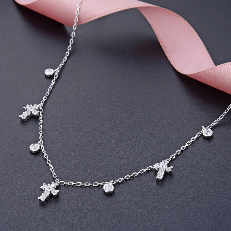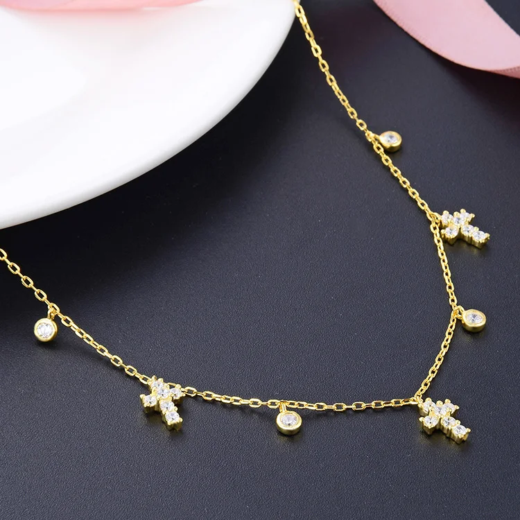 Plata 925 Minimalist Pendant Women Layer Tennis Necklaces Zirconia Jewelry Cross Necklace Gold S925 Sterling Silver CLASSIC 3.5g