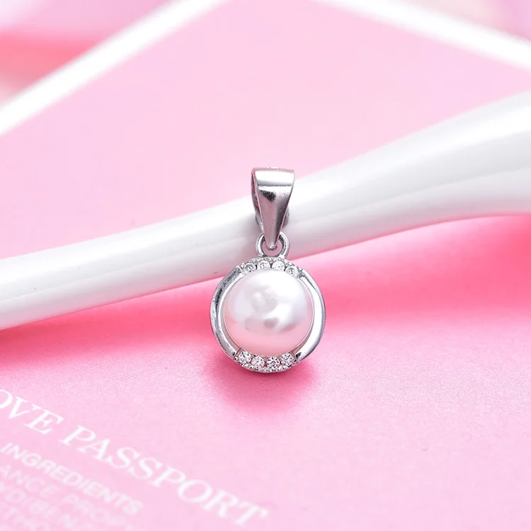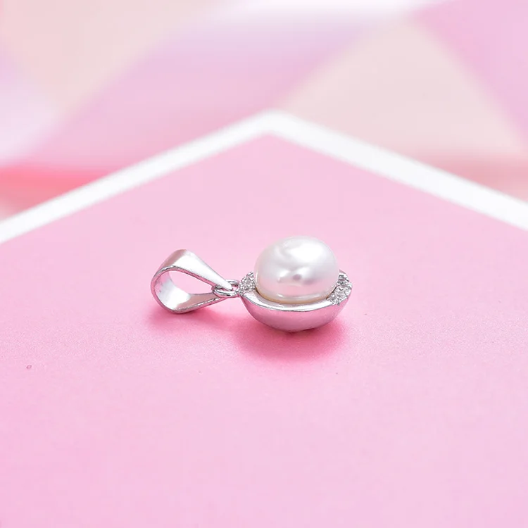 POLIVA Simple Design 925 Sterling Silver Pendants Rhodium Plated Freshwater Mother of Pearl Pendant