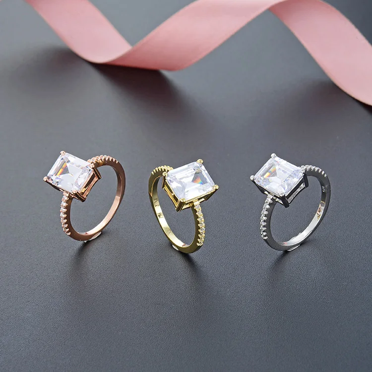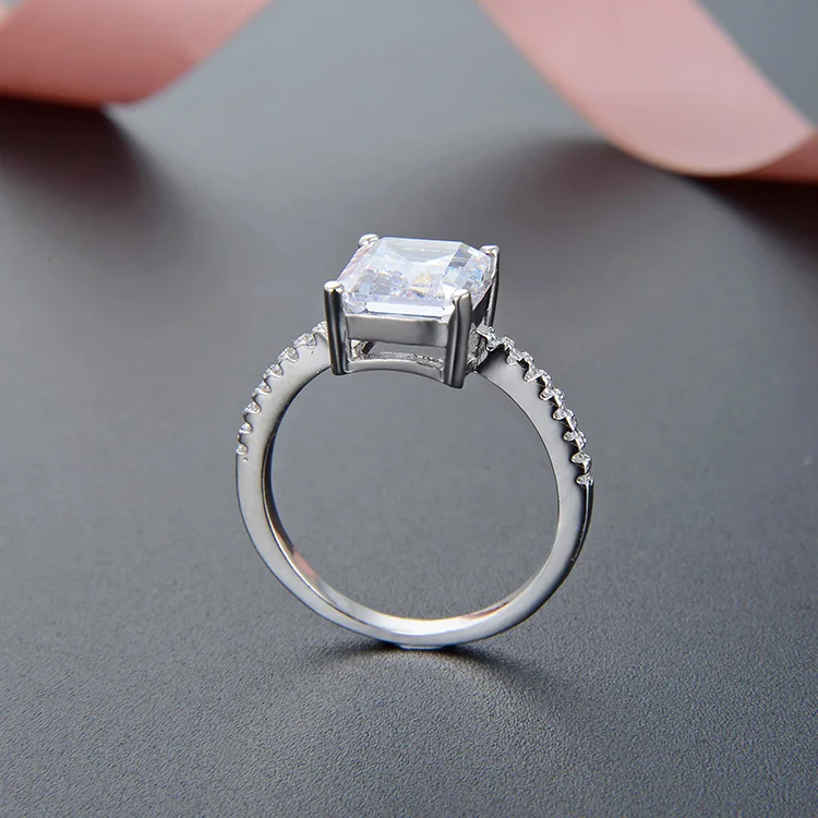 925 Silver Princess Cut CZ Solitaire Ring Rhodium Gold Rose Gold Plated Triple Choice 4 Prong Setting Thin Band Comfort Jewelry