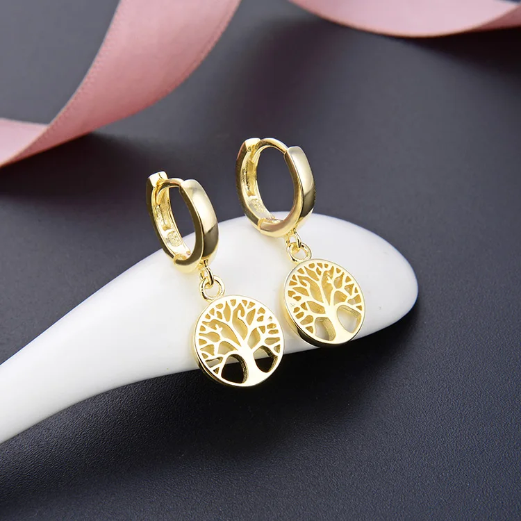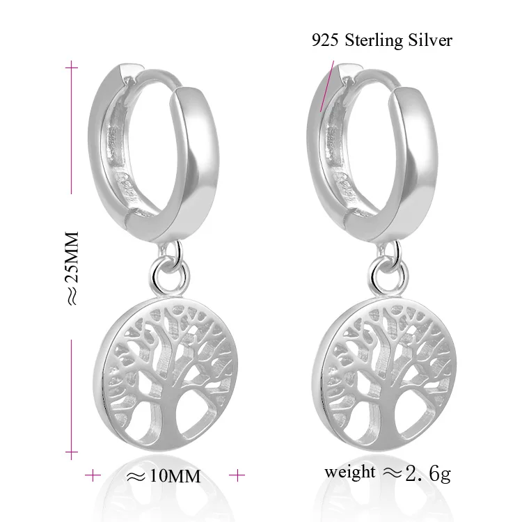 POLIVA 925 Life Tree Rhodium Plating Earrings Nickle Free Women's Hoop Zircon Charm for Wedding or Gift