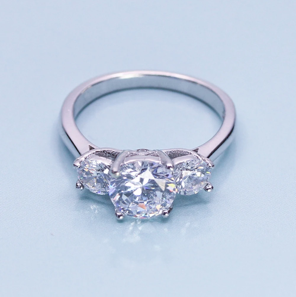 Wholesale Poliva 925 Sterling Silver Engagement Rings Zircon Prong Setting Rhodium Plated for Weddings Parties Trendy