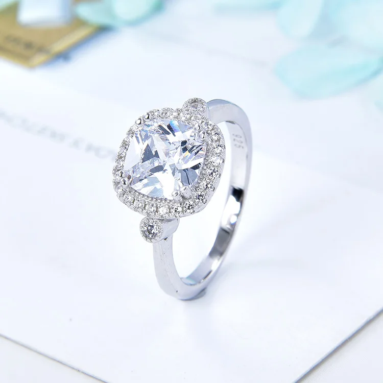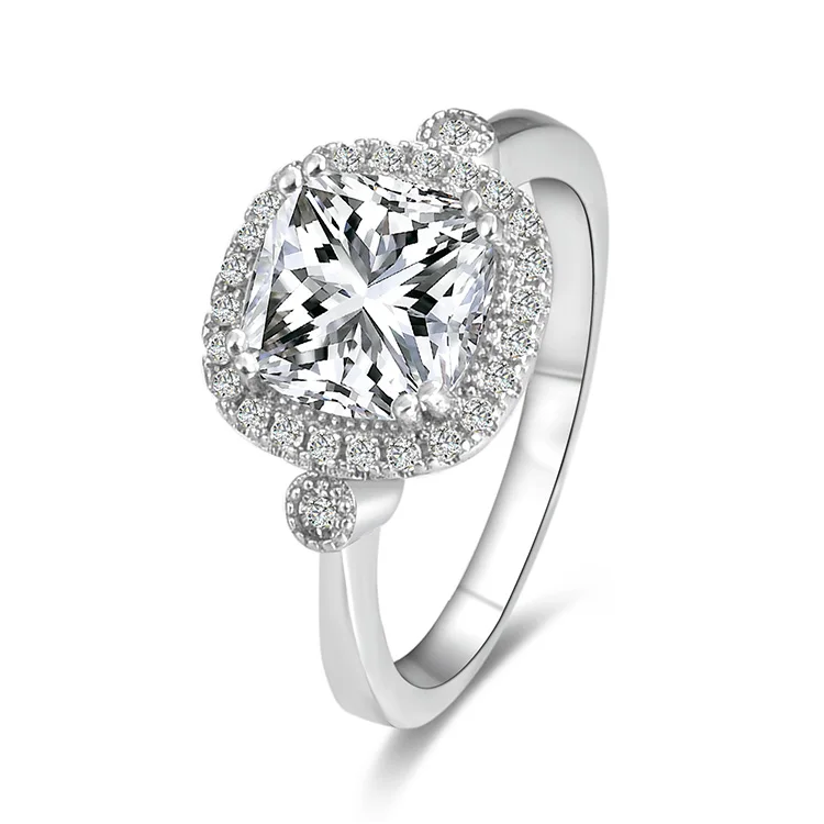 POLIVA 925 Sterling Silver Princess CZ Ring 18K White Gold & Platinum Plated for Weddings & Parties