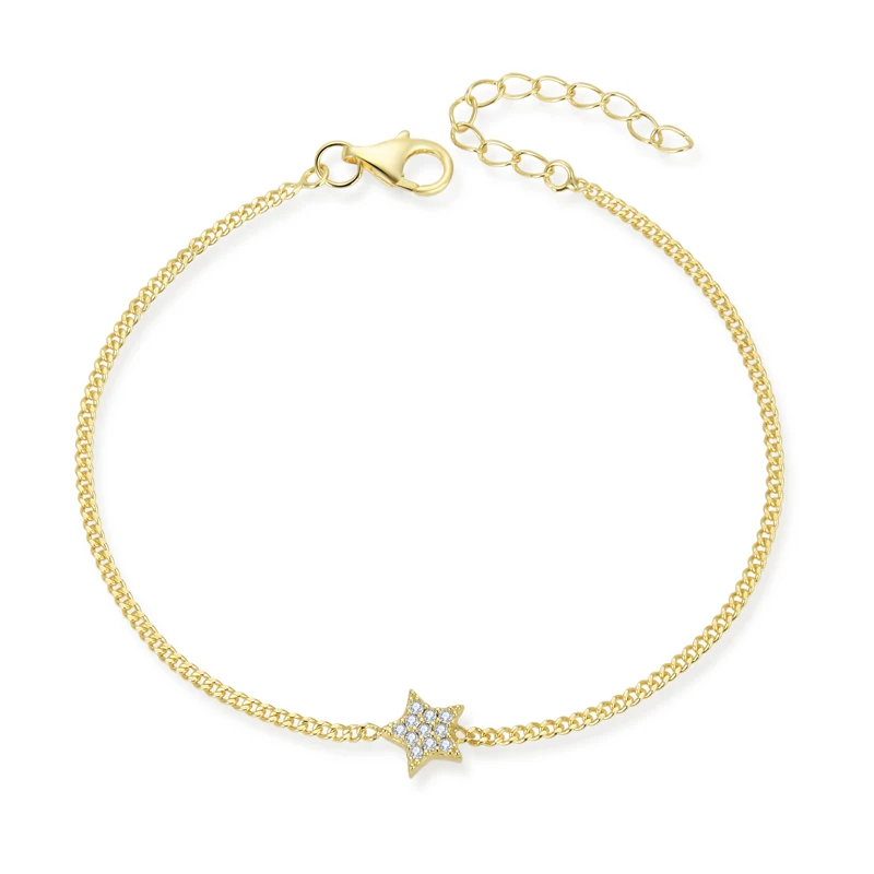 18K Gold Plated 925 Silver Star Charm Bracelet Adjustable Length Dainty Chain Hypoallergenic Minimalist Jewelry Gift for Women