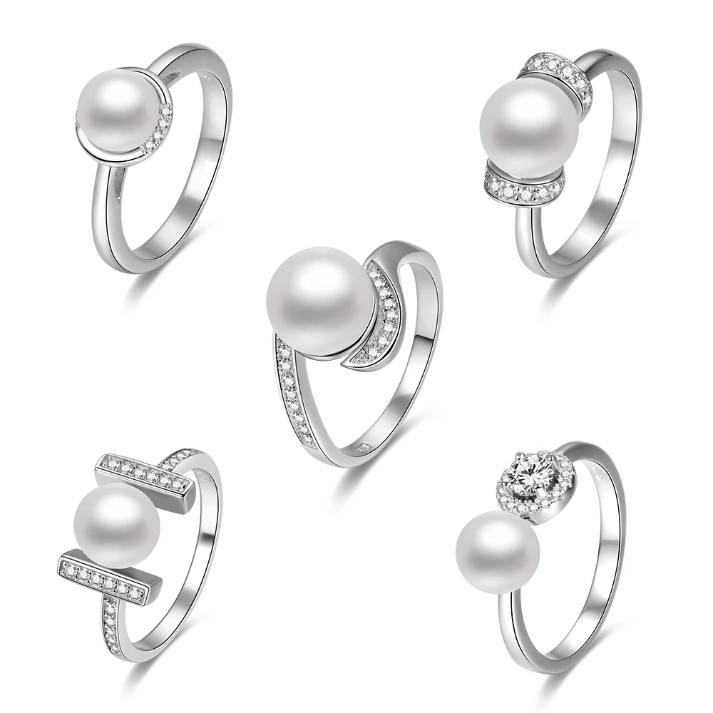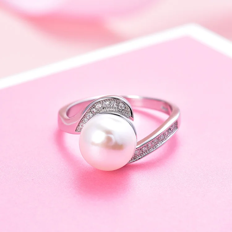 925 Sterling Silver Natural Freshwater Pearl Ring Rhodium Plated Bezel Setting Organic Gemstone Comfort Fit Anniversary Jewelry