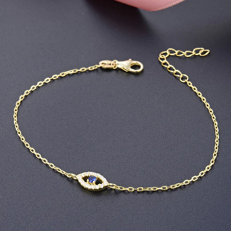 925 Sterling Silver Evil Eye Bracelet for Women Adjustable Gold Plated with Rhodium and Zircon for Gift