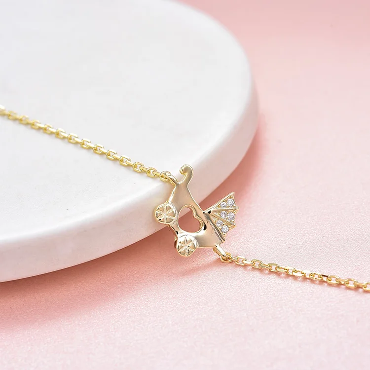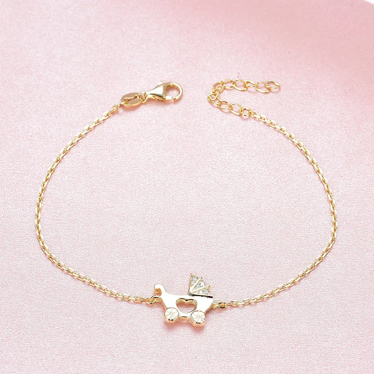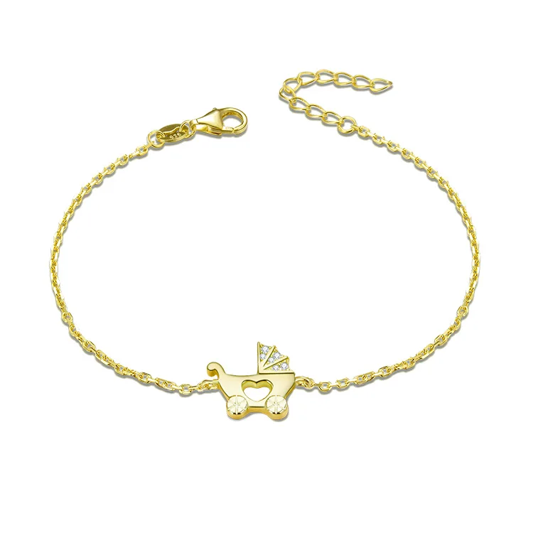 Adjustable 925 Silver Chain Bracelet Gold Plated Fashionable Sterling Silver Baby Carriage Bangles Zircon Stylish Women's Gift