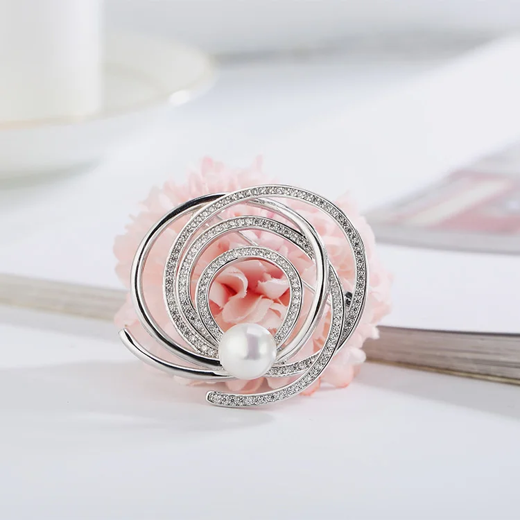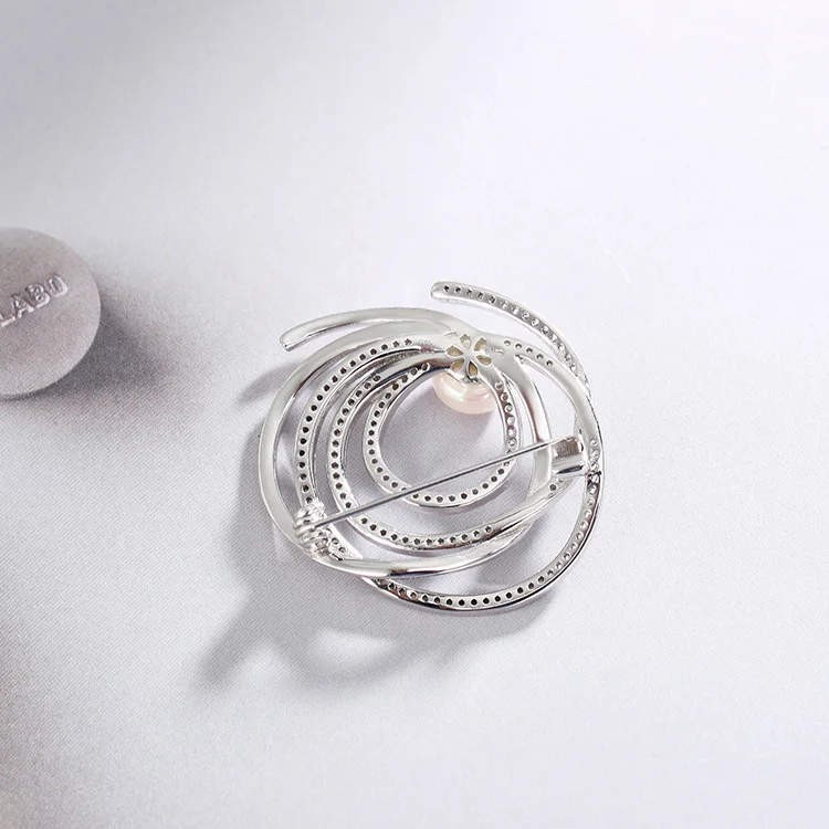 925 Sterling Silver Large Pin Brooch Fashion Designer Jewelry with Pearls
