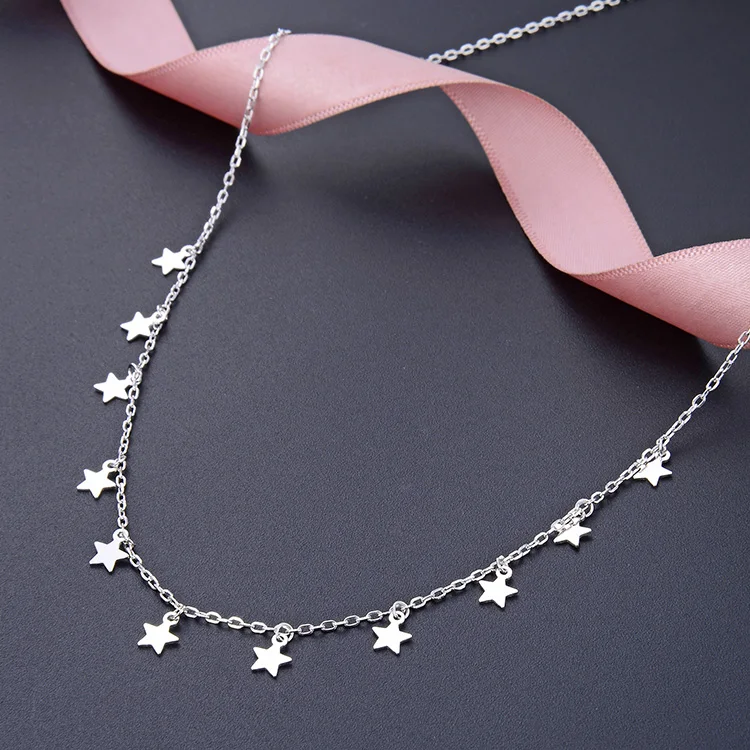 925 Sterling Silver Choker Necklace for Women Star-Shaped Pendant with Zircon Statement Jewelry for Gifts