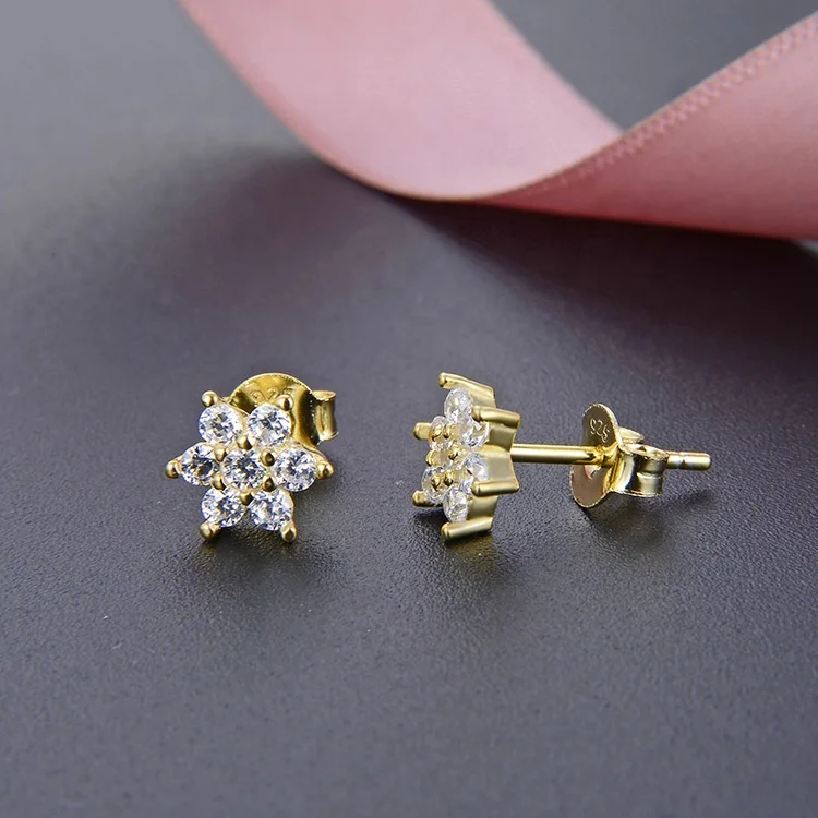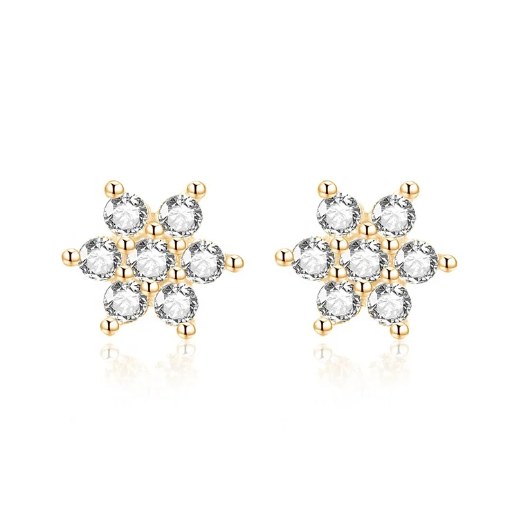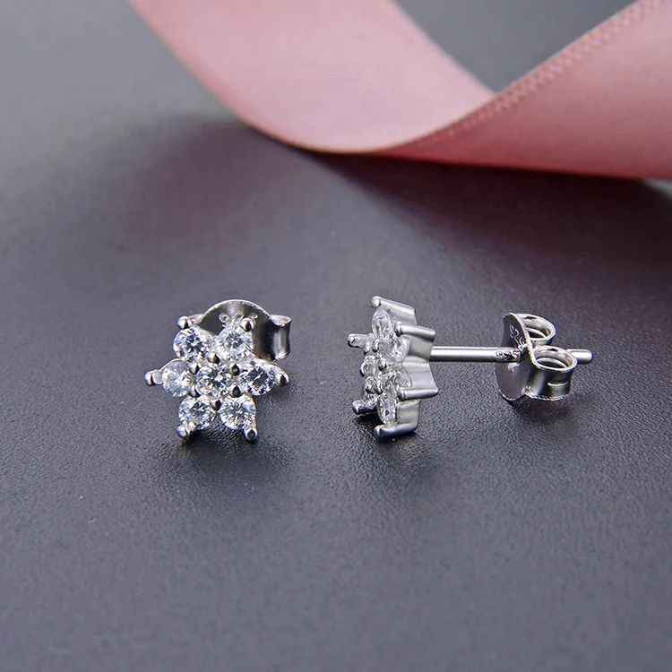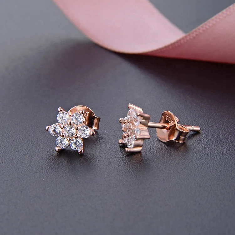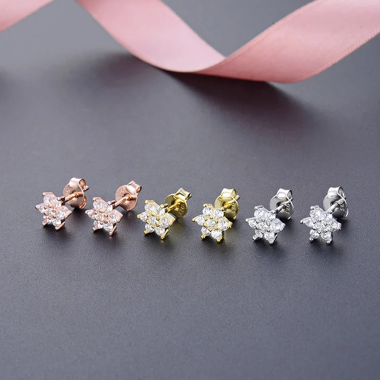 POLIVA Women's Christmas Jewelry 925 Sterling Silver Ear Studs Rhodium Snowflake Shape White Rose Zircon Diamond White Rose Gold