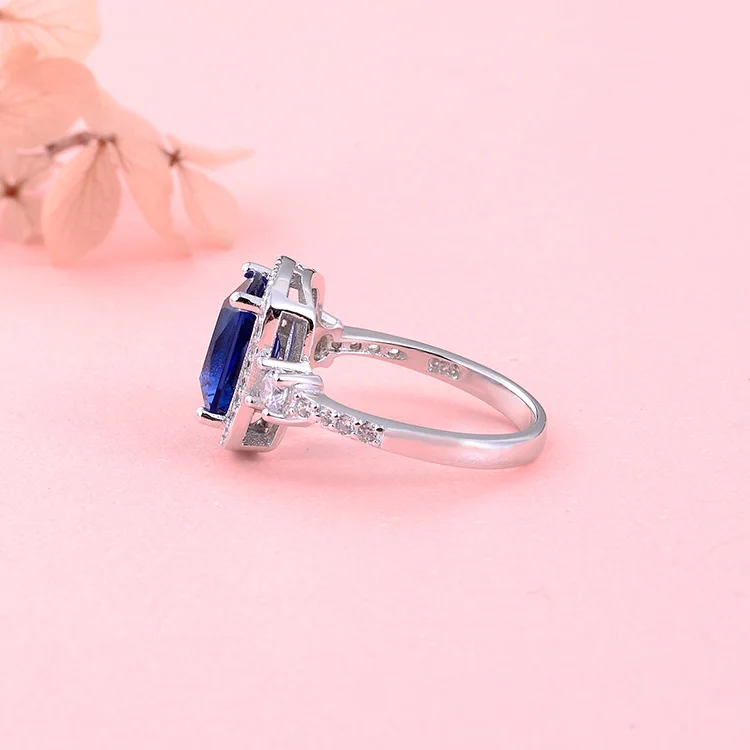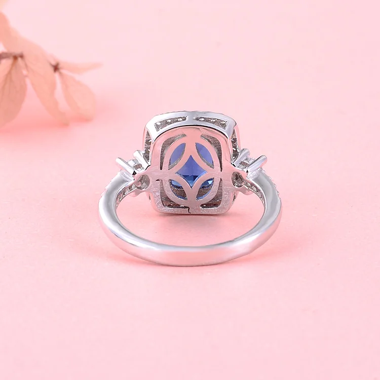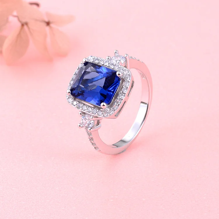 POLIVA Sterling Silver Sapphire Gemstone Rings Vintage Rose Gold Plated Princess Cut Emerald Cut Dark Blue Weddings Wholesaler