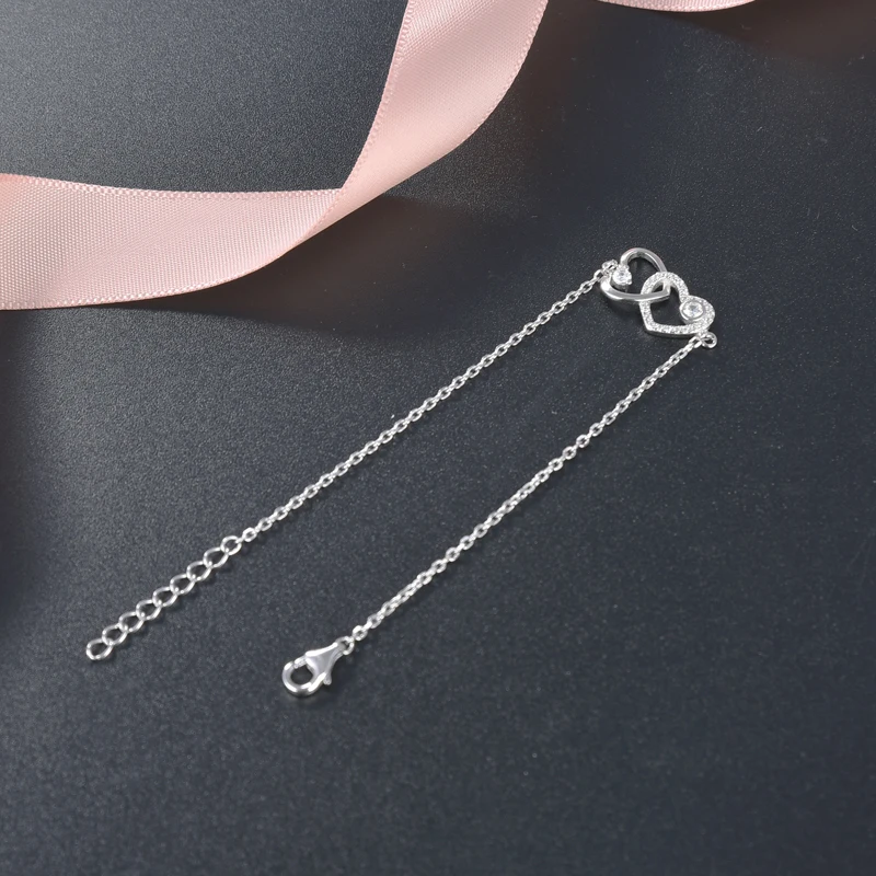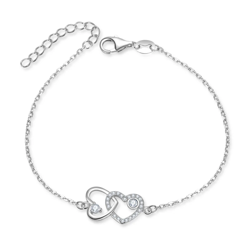 925 Silver Interlocking Hearts Charm Bracelet Micro Pave CZ Accents Adjustable Chain Romantic Symbol Jewelry Gift for Her
