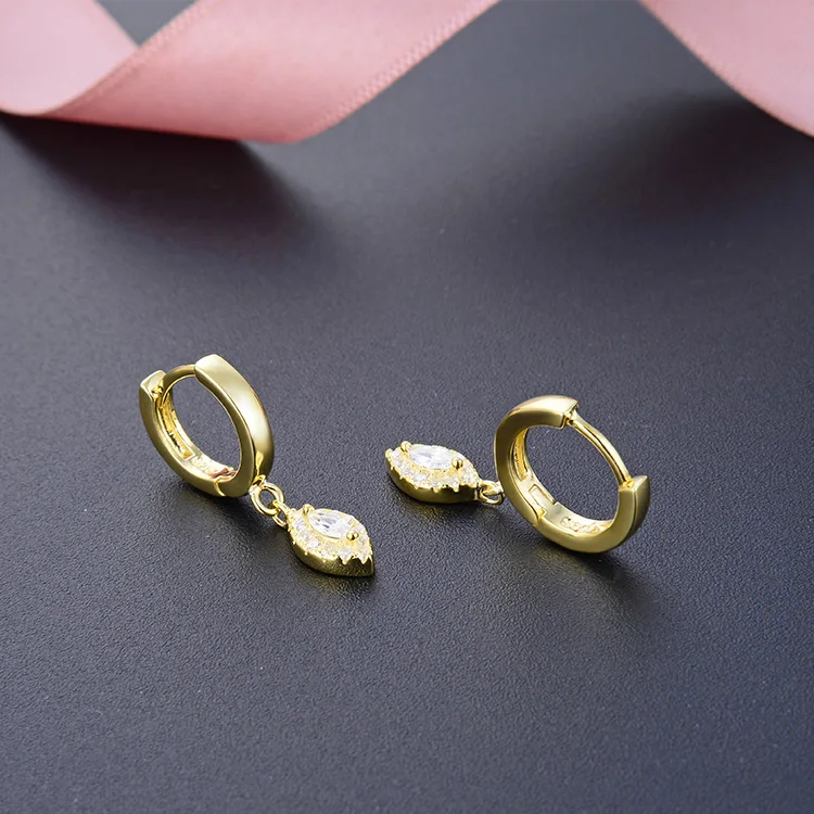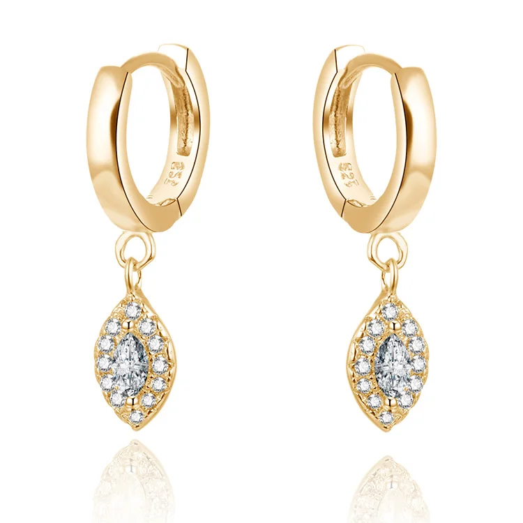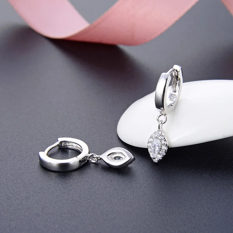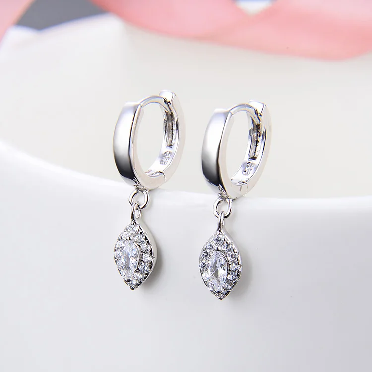 Rhodium 925 Silver Marquise Drop Huggies CZ Accent Hoop Earrings Hypoallergenic Lightweight Gift